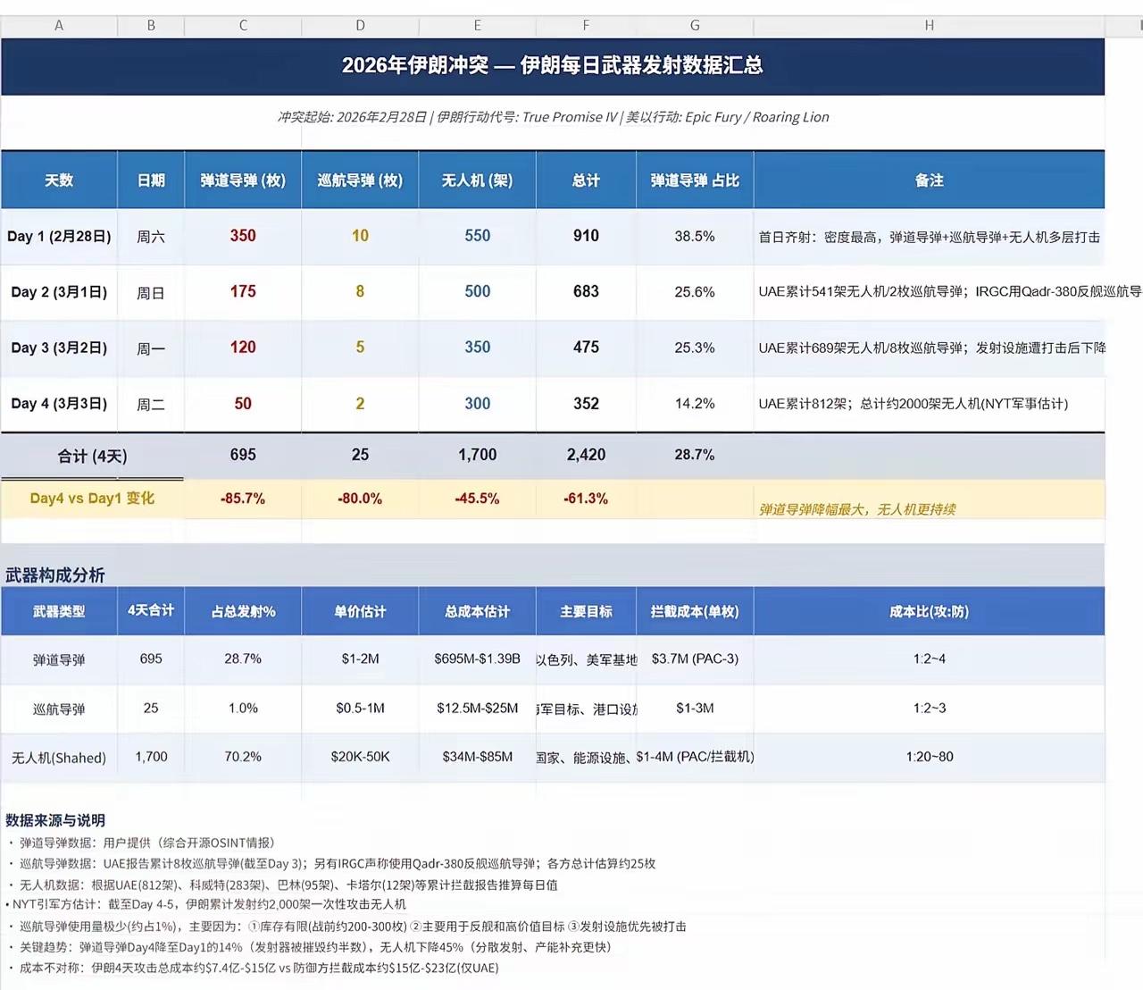 伊朗有2000-3000中程弹道导弹,但不代表伊朗能打出去两三千枚导弹,因为没这么多发射车,而且发射车正不断被摧毁。没有发射车,再多的导弹也没用,不过是烧火棍而已。 很多专家称美国和以色列的防空导弹没有伊朗能打的导弹多,这是事实,但就此认为美国和以色列耗不过伊朗那就是故意以偏概全。伊朗已经丢掉了制空权,意味着每一次发射车驶出地下洞库都可能会被摧毁。目前美以的察打一体无人机24小时在伊朗上空盘旋,伊朗每一次发射导弹都可能马上就会被侦测到,然后被空中点名。 截止目前,美军称已摧毁伊朗数百套发射系统,以军的数据更明确,以军发言人称已摧毁300套伊朗弹道导弹发射系统。这结果就是伊朗的导弹反击力度和规模直线下降。 美军参谋长联席会议主席凯恩称伊朗的导弹发射规模较首日下降了86%,较前24小时下降了23%,。事实证明,美以绝对的空中优势下,伊朗的导弹反击能力正迅速下滑。