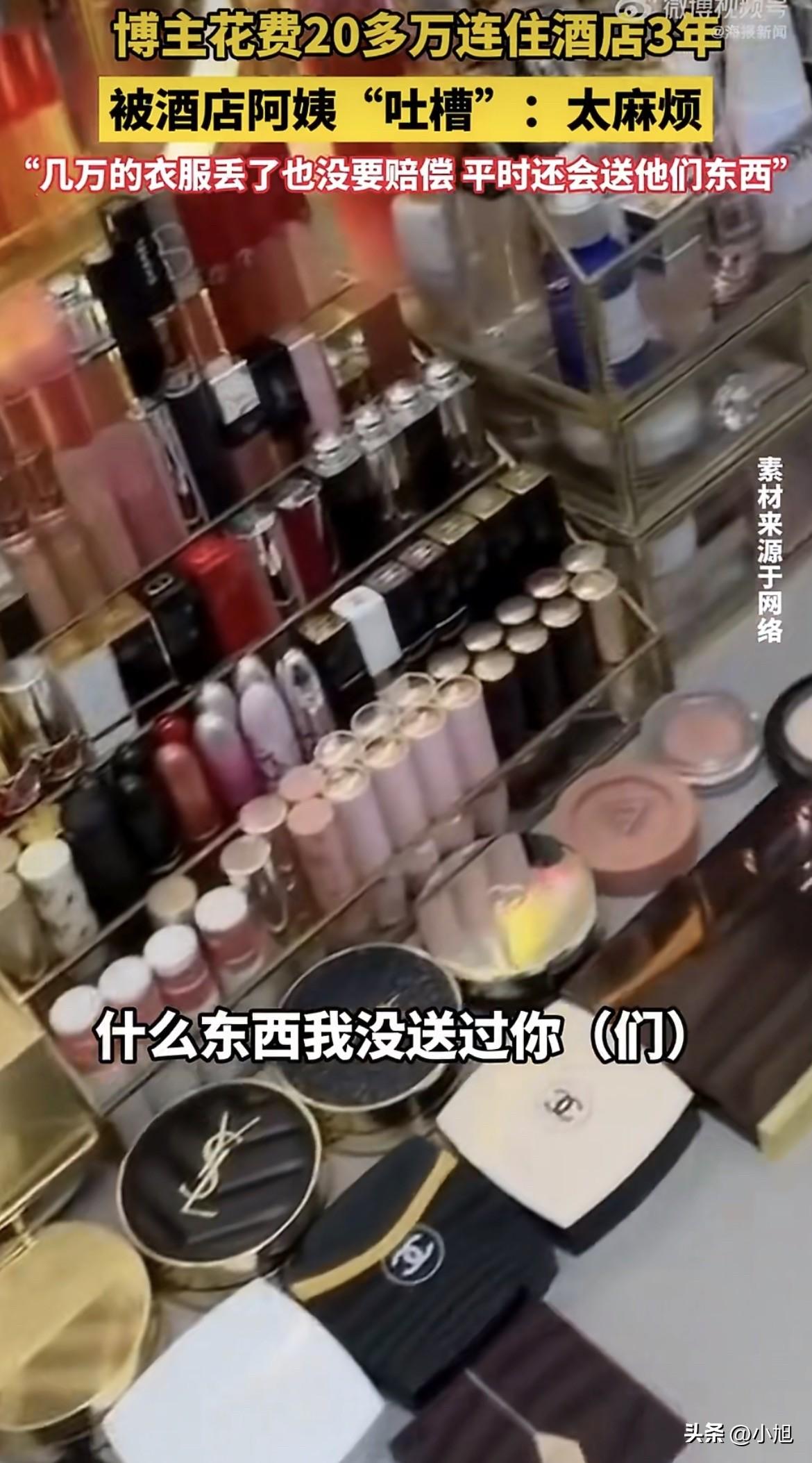 破防了!三年花了20多万住酒店,送口红送卷发棒,前台亲人去世她掏钱安慰,结果在背后被人说“就五十块而已,也好意思拿出手”。 安徽这位女博主姓姜,是个美妆博主。2022年因为工作需要固定背景,住进了当地这家酒店,一住就是三年。房费加起来二十来万,平均一天两百多块。三年,一千多个日夜,她把这儿当成了家。 她是真心想跟酒店的人处好关系。自己是美妆博主,手里化妆品多,全新的口红、卷发棒,成盒成盒往前台送。每次前台小姑娘接着都笑眯眯的,她觉得这就对了,人跟人之间不就该这样嘛。 去年,有个前台家里老人走了,小姑娘上班时候眼睛红红的。姜某看着不忍心,主动掏了50块钱塞过去,说别嫌少,拿着买点吃的,节哀顺变。人家接过钱,连声道谢。她觉得钱不多,是份心意。 还有那些鸡毛蒜皮的事,她从来不较真。几件衣服送洗,拿回来一件上万的裙子洗坏了,领口脱线,面料发毛。她找过去,经理打哈哈说送洗外包不归他们管。她气得够呛,最后还是摆摆手算了。几万块的衣服鞋子,因为酒店乱翻乱放,好些直接堆在仓库地上,她也没让赔过。她总想着,天天见面的人,何必闹那么僵。 可这三年攒下来的别扭,其实早就一件件堆在那儿了。 房间的网络,从住进去第一天就卡。直播的时候经常断线,她报修了没有二十回也有十几回,每次都说“明天让师傅来看”。三年过去了,师傅的影子都没见着。 每次打电话喊打扫,那边永远说“马上来”,但这个“马上”最短40分钟,长的时候一个多小时才有人敲门。她就那么干等着,有时候直播时间都耽误了。 最膈应人的是打扫阿姨的一个习惯——老翻她垃圾桶。她用过的牙膏管,明明扔在最底下,第二天准保被翻出来搁在洗手台边上。她说过好几次,阿姨嘴上答应得好好的,下次照翻不误。后来她只能把不想让人看见的东西,用纸巾包了一层又一层,塞进用过的奶茶杯子里再扔。 还有件事她一直没往外说。去年她想出去旅游几天,带着宠物不方便,就试探着问前台能不能帮忙照看一下她的小仓鼠,就几天,笼子食盆都现成的。前台的脸色当时就有点僵,说问问经理,后来回话:酒店规定,不能寄存活物。她知道规定是死的,但心里还是凉了半截——三年了,连这点忙都不愿意帮吗? 真正把她点炸的,是3月2号那天。她路过楼梯间,门虚掩着,里面几个声音飘出来——有阿姨的,有前台的,正聊得热闹。她本来没想听,但自己的名字清晰地钻进了耳朵里。 “就那个长住的,事儿太多了,天天折腾人。” “可不是嘛,送那点破东西,谁稀罕。” “上次她捐那50块,也好意思拿出手?就五十块钱而已,不够丢人的。” 另一个声音接话:“她就爱告状,动不动找男朋友说,然后让她男朋友找经理,烦死了。” 一阵哄笑。 她站在走廊里,脚底像生了根。送出去的口红、卷发棒、奶茶,那几件没让赔的衣服,那50块钱的“心意”,那句“别难过,都会好的”——原来在这些人嘴里,全成了笑话,全成了“爱告状”“事儿多”“拿50块钱充好人”的证据。 她现在把这事发到网上,酒店已经道歉,那个前台被停职了。可她心里那根刺,怕是拔不出来了。 三年,二十万,一堆礼物,一份真心。最后换来的,是那句“就五十块钱而已”。你觉得,这事到底谁的问题更大?
