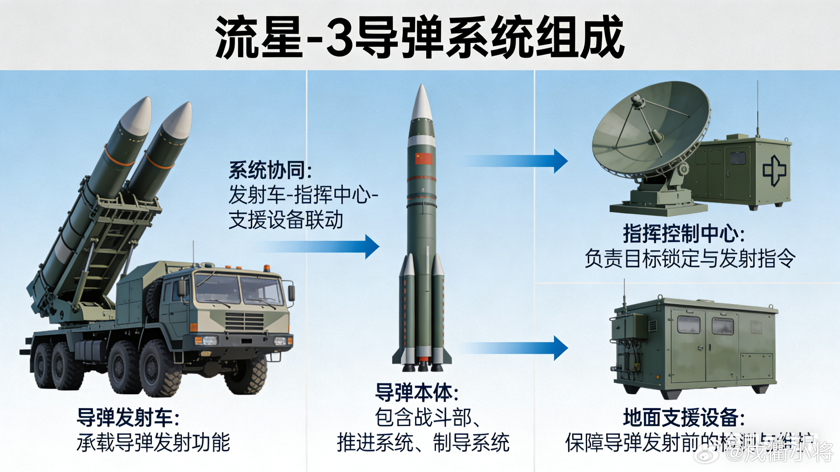 流星-3(Sejjil-3 / 流星-3 改进型)是伊朗自主研发的两级固体燃料中程弹道导弹,是伊朗远程打击力量的核心装备。该导弹采用固体推进剂,具备发射准备时间短、生存能力强、机动部署等特点,可覆盖中东及周边战略目标,是伊朗区域威慑与国防自主化的标志性武器。美伊以冲突军事ai新视野全球武器装备盘点