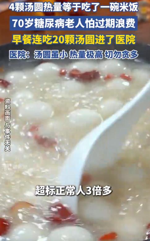 近日,浙江,一70岁老人患有糖尿病,在春节期间,怕汤圆过期浪费,竟一口气吃了20颗汤圆当早饭,结果血糖直接飙升,出现乏力,多尿急性高血糖症状,最终被直接送进医院,情况十分危急!网友:不嫌腻吗? 这件事在当地邻里间传开后,不少人都替老人捏了一把汗,也有人忍不住吐槽,这节俭的心思没错,但也不能拿自己的身体健康来换啊。 据老人的家人说,老人患有糖尿病,这些年一直遵医嘱,饮食上格外注意,甜的、油的、糯的东西都很少碰,平时血糖控制得也算平稳,连医生都夸他配合得好。 老人是从苦日子过来的,一辈子最见不得浪费,不管是粮食还是日用品,只要还能用、还能吃,就绝不会轻易丢掉。 今年春节前,老人的子女特意提前买了好几袋汤圆,有黑芝麻馅的,还有花生馅的,都是老人平时偶尔会尝一颗的口味,想着过年一家人围在一起吃,图个团圆吉利。 可春节期间一家人忙着招待客人,竟忘了冰箱里还有这几袋汤圆。 直到春节假期结束,子女都陆续上班了,老人一个人在家整理冰箱,才翻出了这几袋被遗忘的汤圆。 老人看着这几袋完好无损的汤圆,老人觉得,扔了吧,太浪费,毕竟是花钱买的,而且里面的汤圆看着也没变质,过几天才到保质期呢。 不扔吧,再过几天就不能吃了,更可惜。 他琢磨来琢磨去,觉得自己平时血糖控制得不错,就吃一次,应该没关系。 于是,老人一锅煮了足足20颗汤圆。 老人平时很少吃甜食,这久违的甜味,让他一时没忍住,不知不觉间,那些汤圆全被他吃完了。 吃完这些汤圆,老人还坐在餐桌旁歇了一会儿,想着歇会儿就去楼下散步。 可没过多久,他就感觉喉咙里变得干得发疼,像是冒火一样。 不管喝多少白开水,都缓解不了那种干渴,而且尿意变得特别频繁,刚上完厕所没几分钟,就又想去,一趟又一趟,整个人都变得无精打采。 老人一开始还以为是吃多了撑的,想着歇一歇就会好,可随着时间推移,症状越来越严重。 刚好这时候,老人的女儿回家,一进门就看到父亲瘫坐在椅子上,状态不对,心里一下子就慌了,赶紧上前询问情况。 得知父亲吃了20颗汤圆后,女儿不敢有丝毫耽搁,立刻拿出手机拨打了120急救电话。 急救车很快就赶到了,医护人员下车后,立刻给老人测量了指尖血糖,当看到血糖数值的那一刻,在场的人都惊呆了——老人的血糖已经飙升到了30多mmol/L,而正常的空腹血糖范围才3.9-6.1mmol/L。 好在经过医护人员的不懈努力,老人的血糖慢慢开始下降,脸色也慢慢有了血色,精神状态也好了一些。 这件事被发布到网上后,有网友表示:“特别能理解老一辈人的节俭,毕竟是从苦日子过来的,见不得浪费,但是健康才是最重要的,浪费一点食物没关系,要是把身体搞垮了,反而更得不偿失。” 也有网友说到:“20颗汤圆啊,就算是年轻人,一口气吃下去也得腻得慌,老人居然能全部吃完。” 对于老一辈人来说,节俭的观念深入人心,很容易因为怕浪费而过量进食。 但是食物过期了可以扔掉,可健康一旦受损,就很难再恢复如初。 (信息来源:《4颗汤圆=1碗饭?有人一口气吃了20颗,被紧急送医!快转发给家人》福建卫生报)