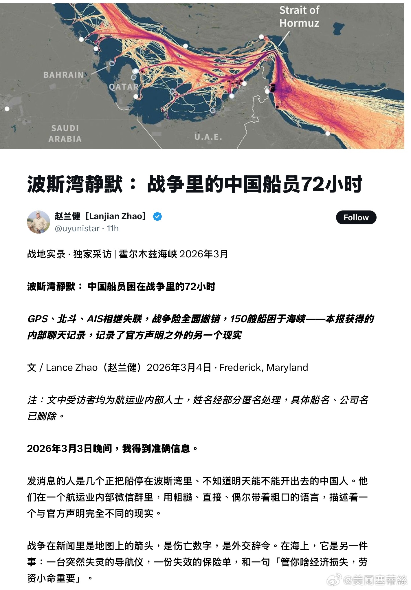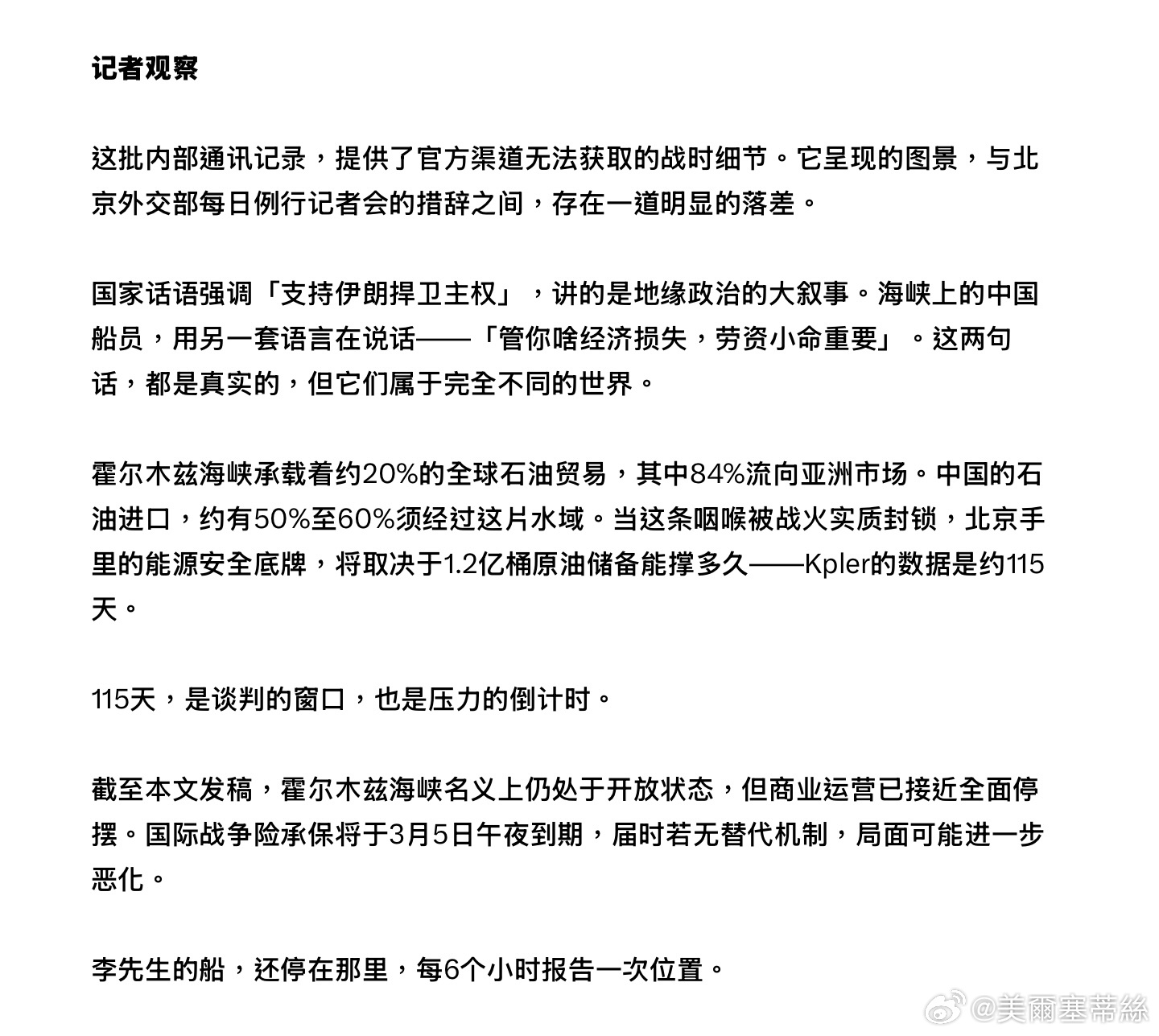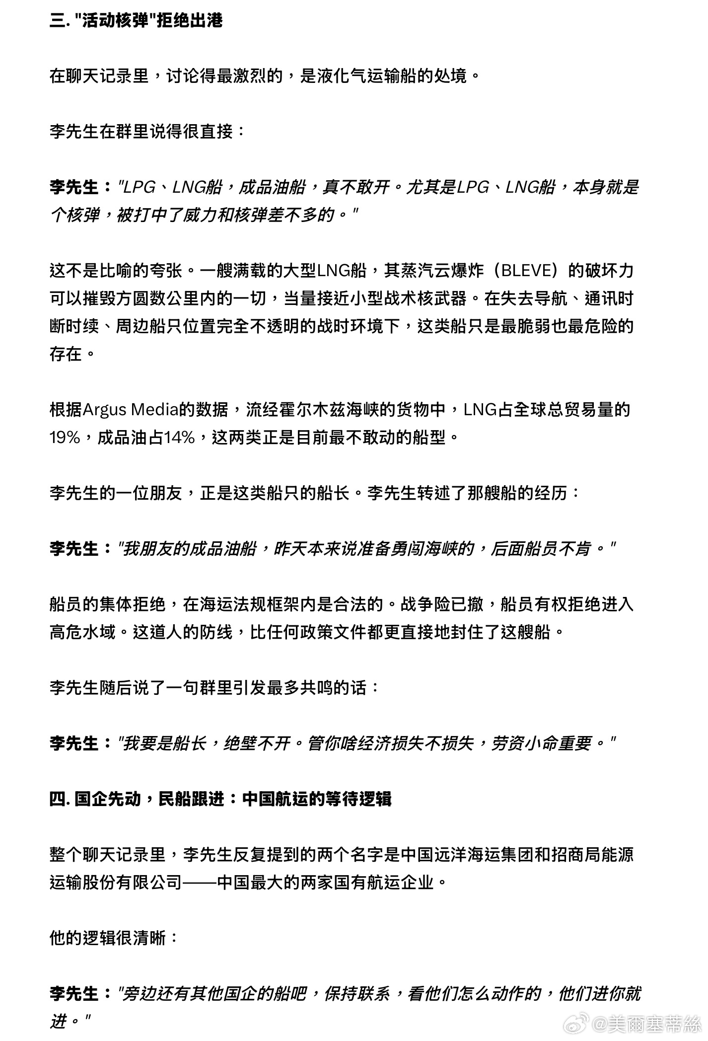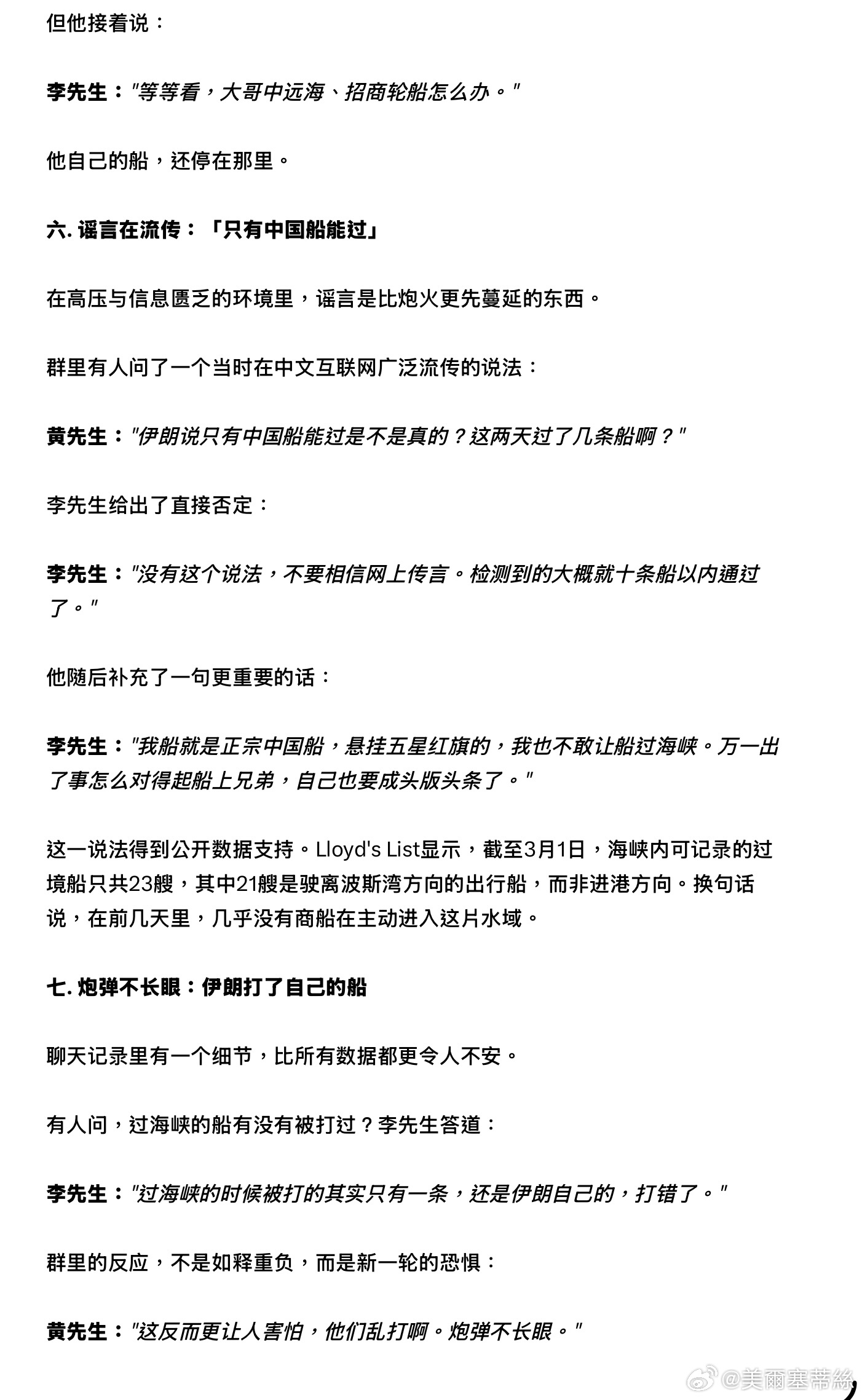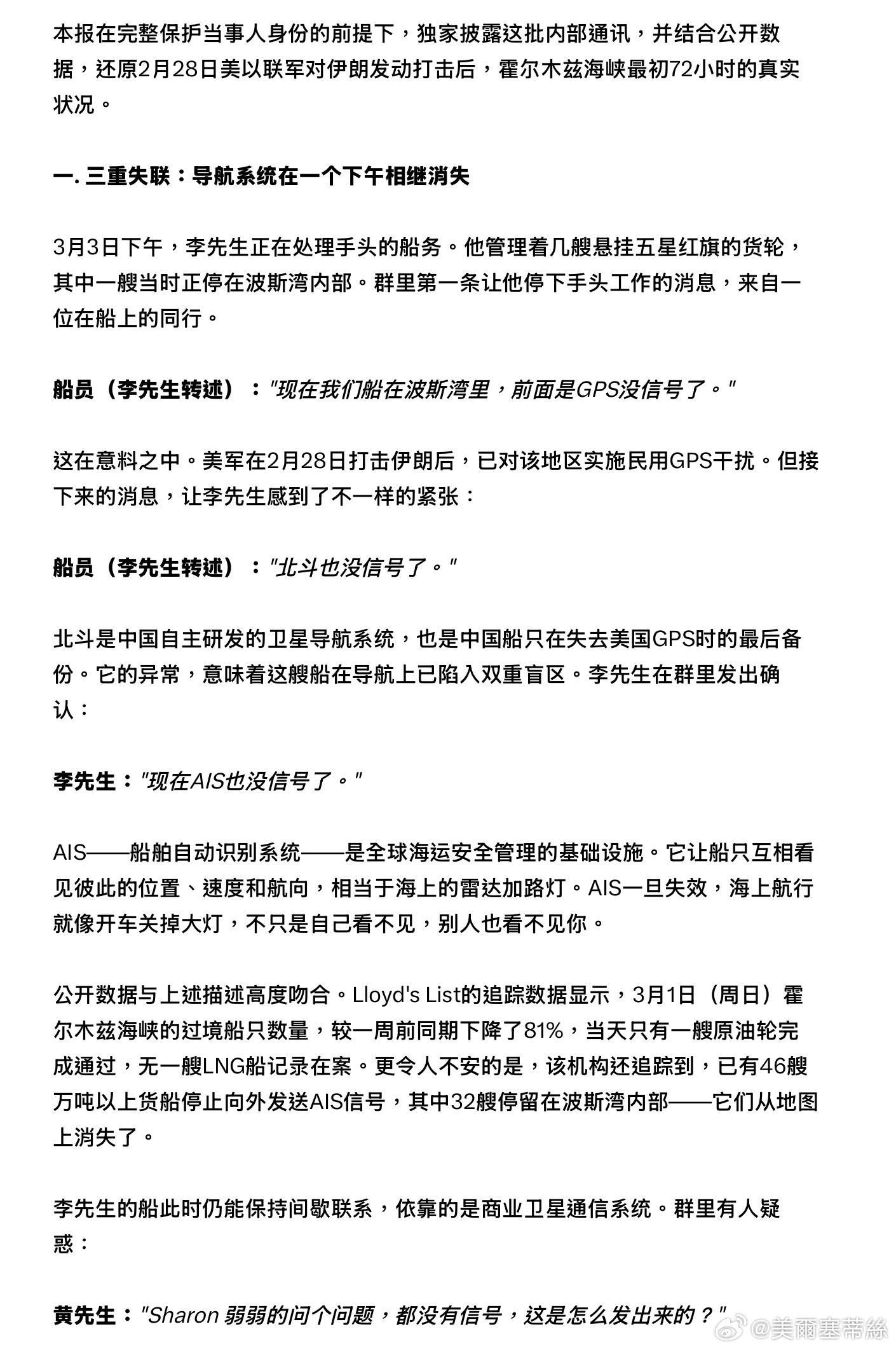 透露了一个极具震撼意味的细节:迄今为止,在海峡附近有记录的被击中船只,只有一艘——而且是伊朗自己的船,系被己方误伤。