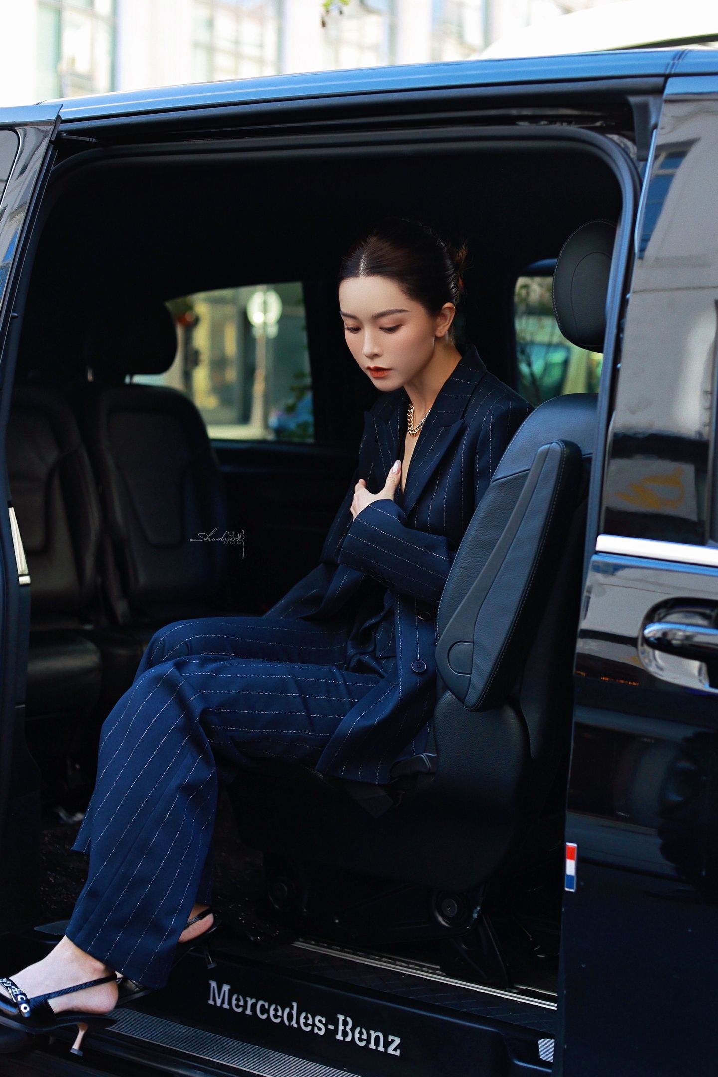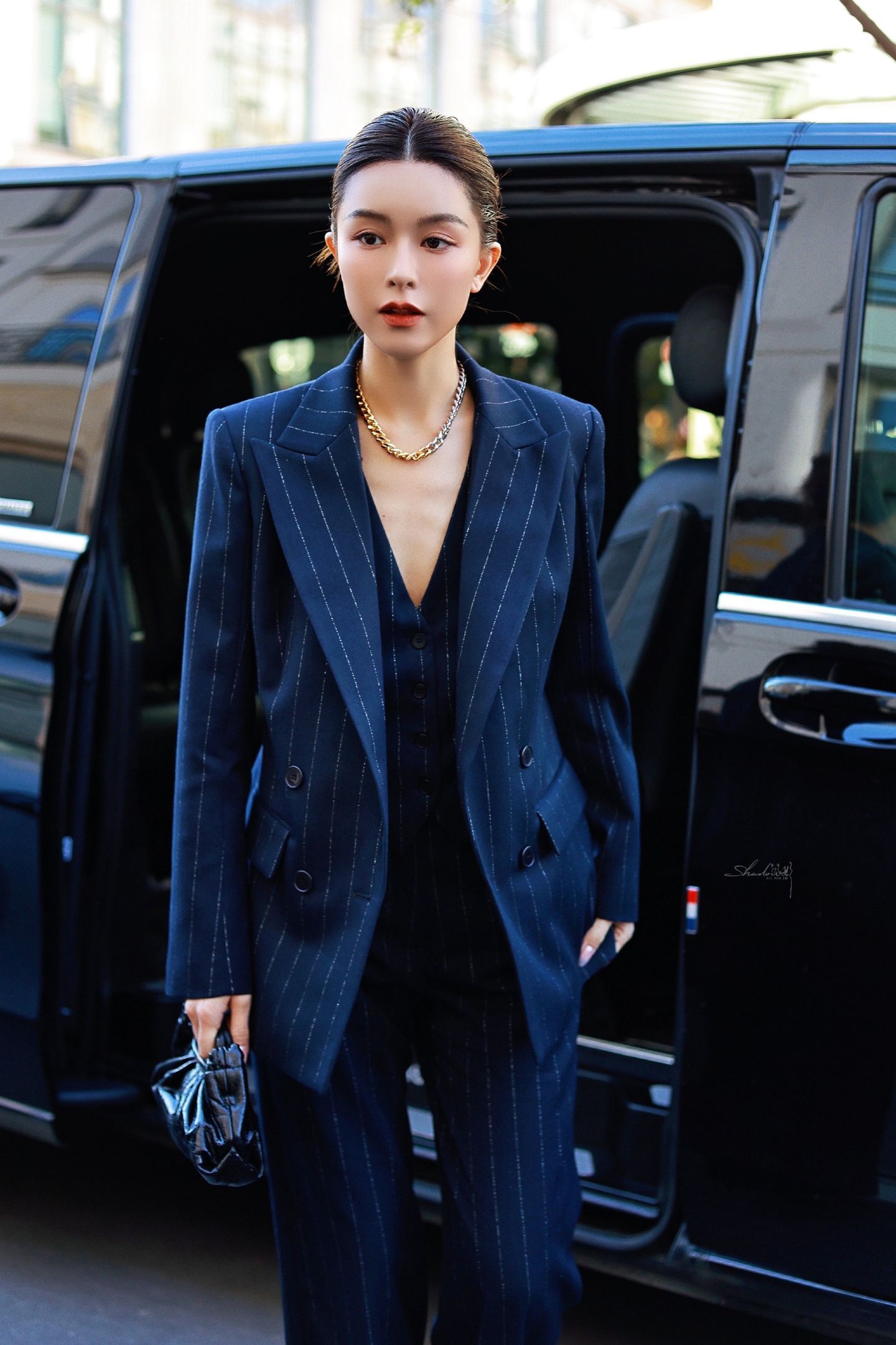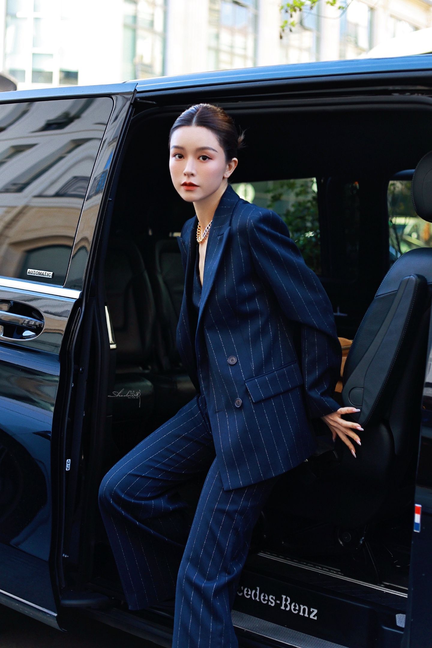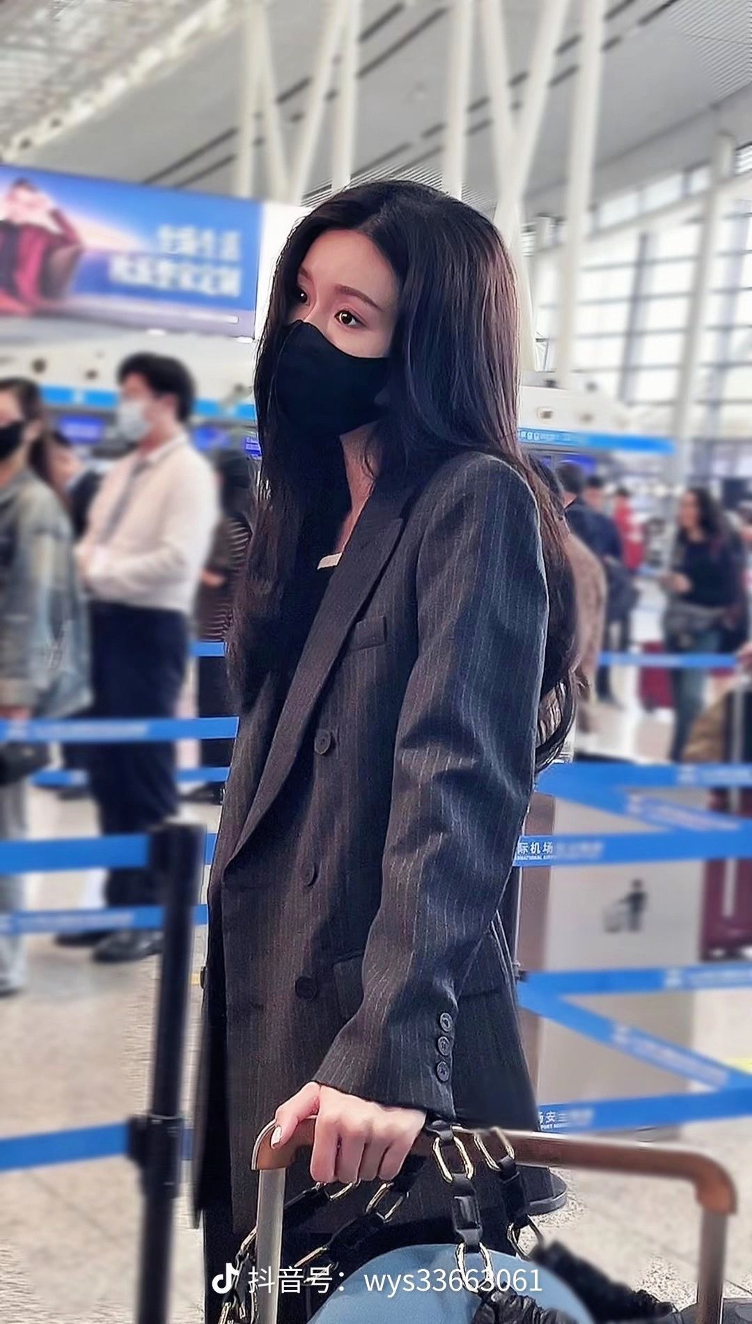 文咏珊出个国帅成啥了被文咏珊的机场新造型帅到尖叫!笔挺的条纹西装上身,瞬间变身走