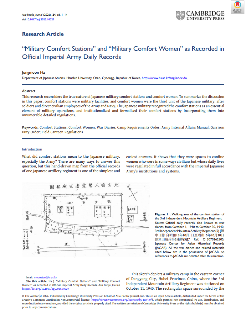² 那些日本的修正派学者提出,慰安所都是民营的,人员可以自由出入慰安所,所以跟社会性的卖淫场所没有区别。但这篇论文细致地检索日军作战日志,说明:慰安妇处在军营内,不能自由出入。而且,除了被性奴役,还要被迫从事许多军营的后勤工作。日军编制的条例文件强烈表明:日本军方把慰安所视为军事行动的重要组成部分,通过无数详细的规章制度使其制度化、正式化。