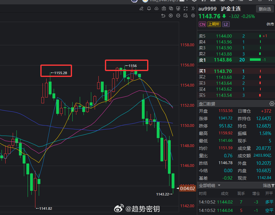 黄金的空还是没有结束,依然还是要下跌的。日线级别出现二次下跌。