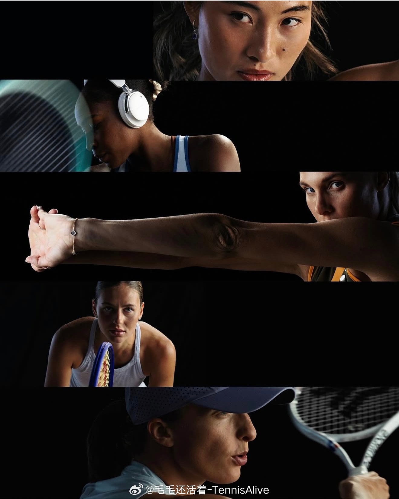 【WTA最新宣传照:郑钦文很侠女眼神】这组照片拍得很不一样。展现了球员们另一种性