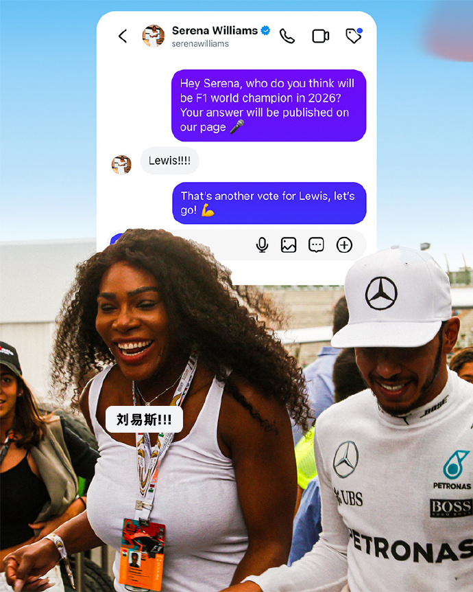 作为汉密尔顿的好友,小威回答:“刘易斯!!!!”