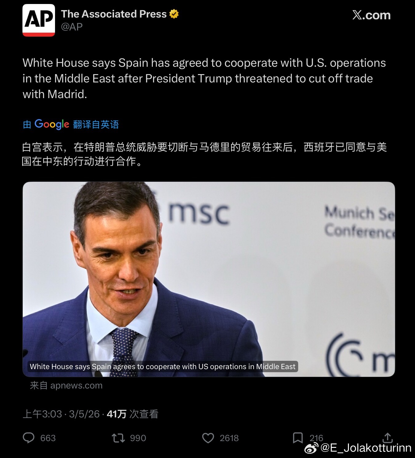 日本急着飞蛾扑火的同时,西班牙正在公开揭批美国的谎言。