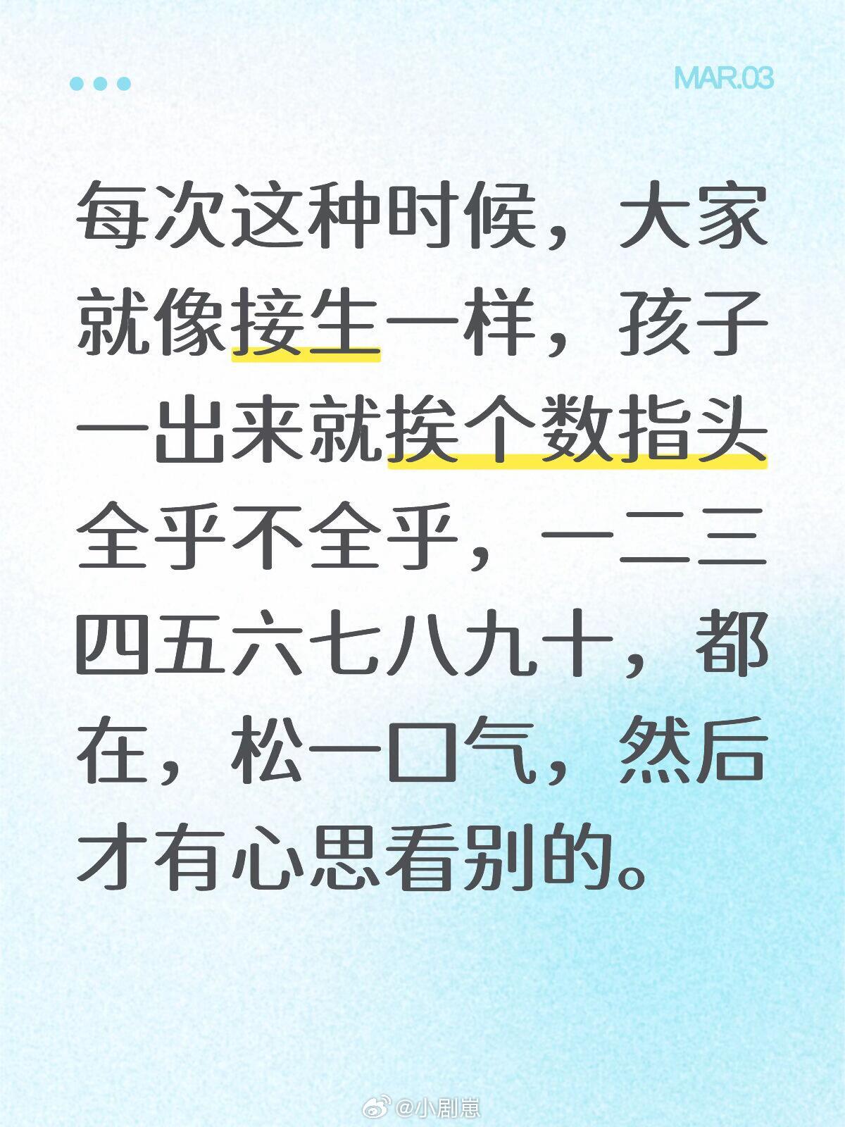 十个勤天每次这种时候,大家就像接生一样,孩子一出来就挨个数指头全乎不全乎,一二三