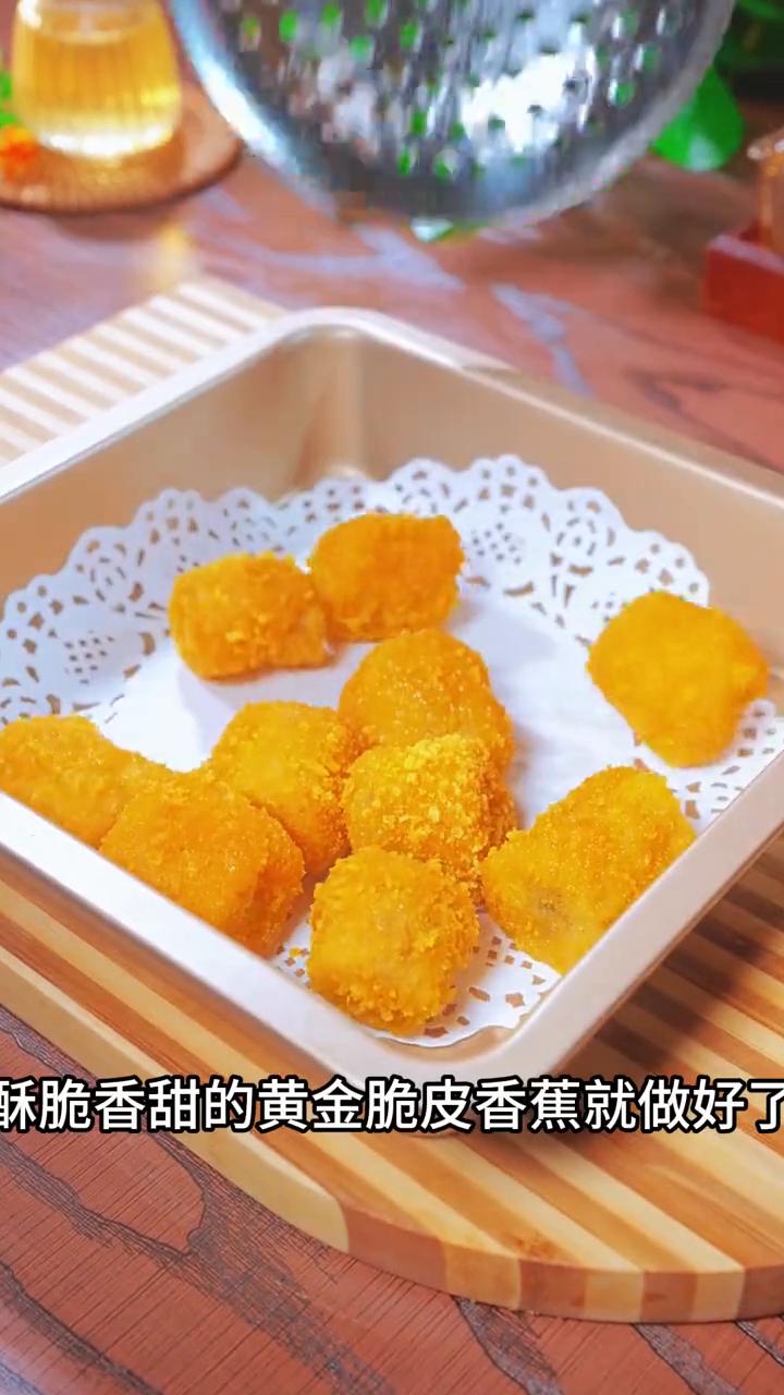 黄金脆皮香蕉。 家人们注意看,只需要在香蕉中打入四个鸡蛋,出锅就是网上最近很火的香蕉的神仙吃法。餐厅一份要卖88,自己在家做成本不到五块,香甜酥脆,就连挑食的孩子都抢着吃。 ·先把树上摘来的香蕉切成像我大拇指一样的小段。 ·先给它拍上一层的淀粉,再给它涮上一层的鸡蛋液。 ·再把剥下来的香蕉皮切成均匀的小丁。 ·好吃的关键就是给它裹上酒店大厨都在用的黄色面包糠,它是用精选小麦制作而成,用它还可以炸鸡排、炸苹果,都非常酥脆好吃。 ·裹好的香蕉油温六成热下锅炸,中小火炸至金黄酥脆即可捞出。 又香又脆,酥脆香甜的黄金脆皮香蕉就做好了,一上桌我家三个儿子都抢着吃,真的太香了。 你也收藏给家人做起来吧!想试试不知道面包糠在哪的家人,点我头像就能看到。
