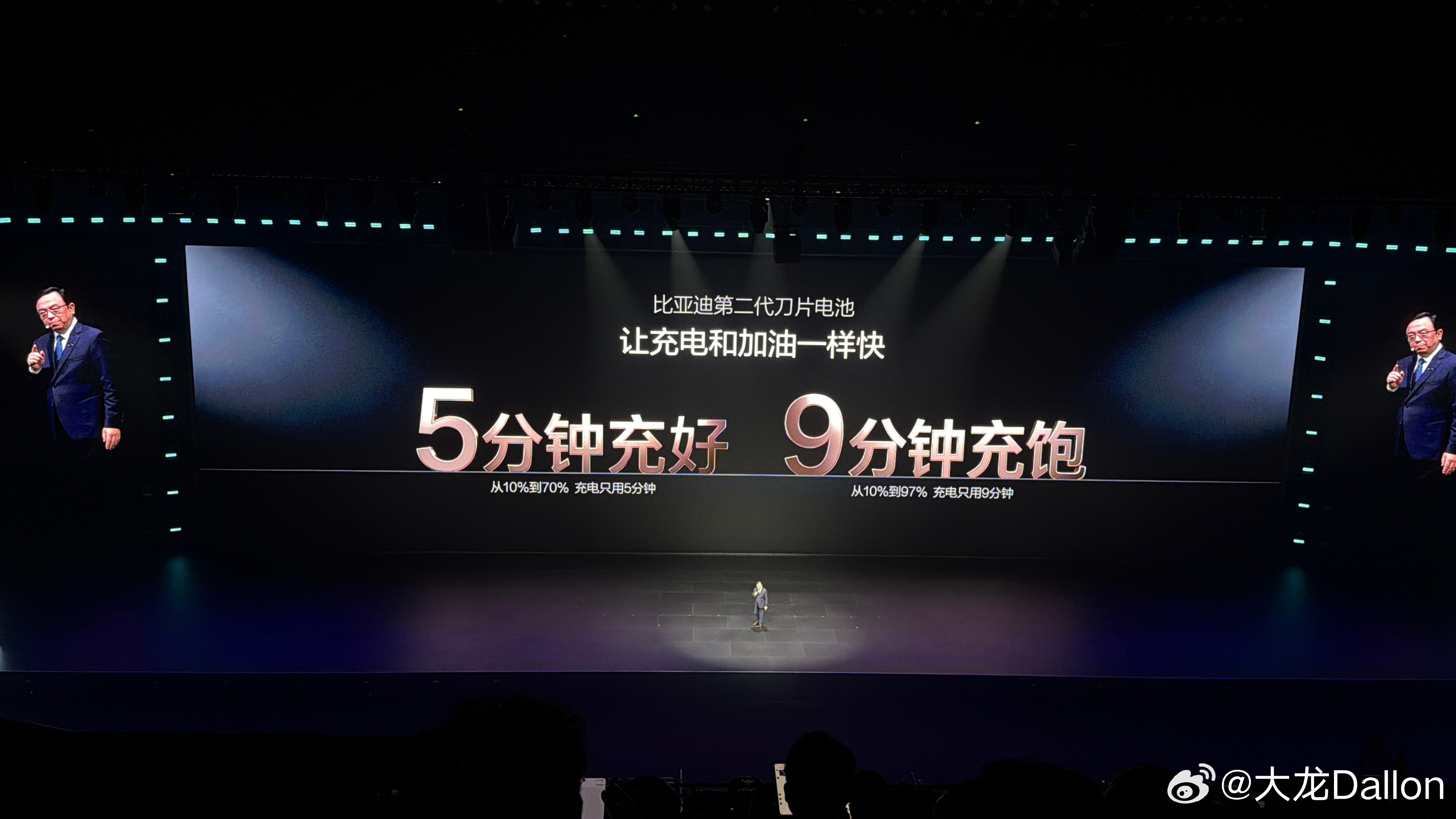 比亚迪第二代刀片电池来了,五分钟就可以从10%充电至70%,九分钟从10%充至9
