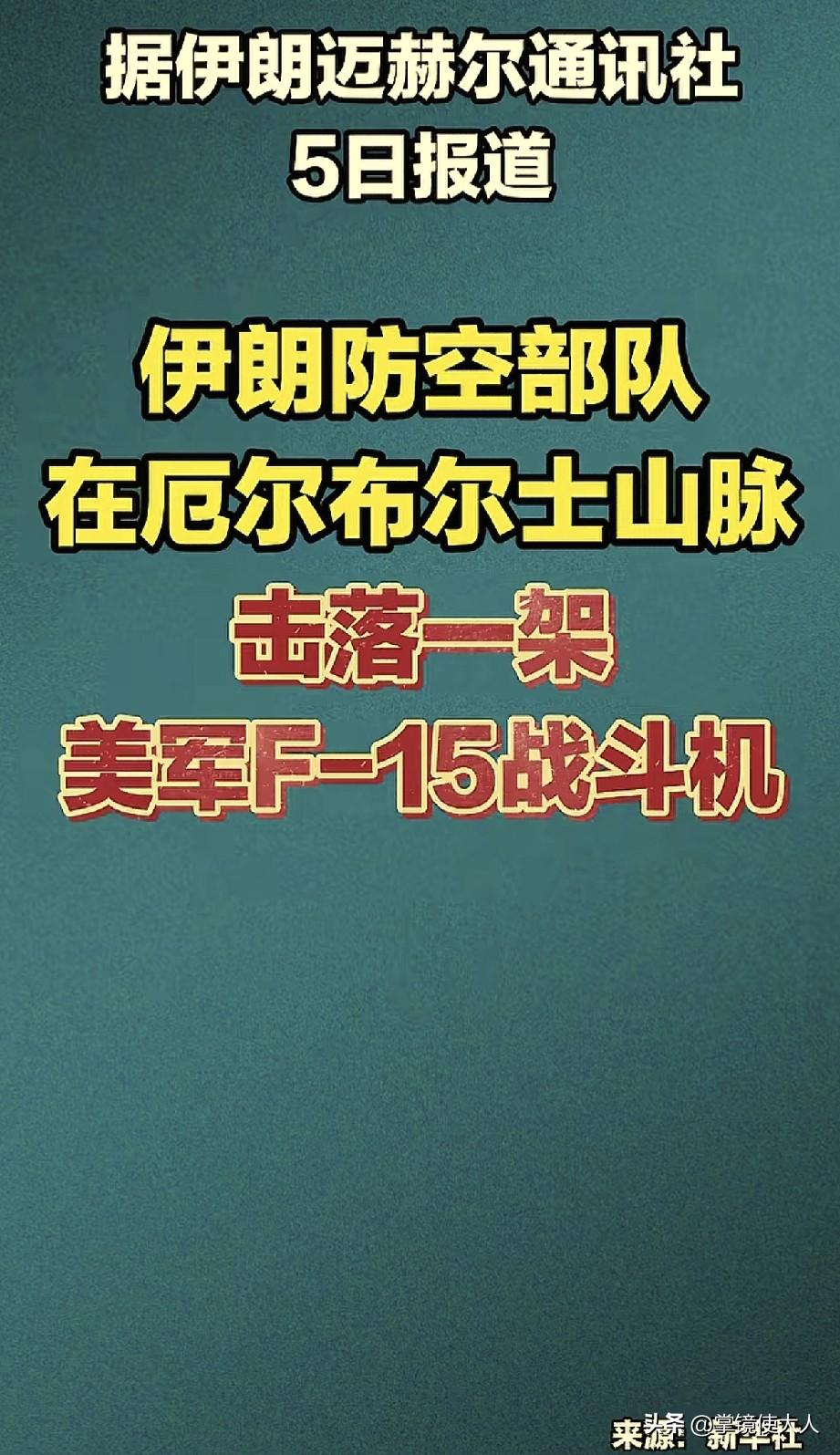 美国一架F-15战机被伊朗击落,美国显然不会承认,因为传出来了太丢人,伊朗想向外界证明,目前只有一个办法,那就是找到该架F-15战机的残骸,发布出来。 据新华社报道,伊朗的一家媒体公布了伊朗的防空系统,在伊朗厄尔布尔士山脉上空击落了一架美国F-15战机。 目前美国方面没有对此进行任何回应,只是伊朗媒体单方面报道。 厄尔布尔士山脉位于伊朗北部,如果伊朗真的击落了这架战机,飞机的残骸肯定落的到处都是,美国显然无法完全找回。 伊朗最好的办法就是找到这些飞机残骸,并将照片公布出来,这样才可以验证其真实性。 如果伊朗真的击落了这架战机,那么对美国而言绝对是一个不小的打击。 就看伊朗能不能拿出残骸,挫挫特朗普的锐气!