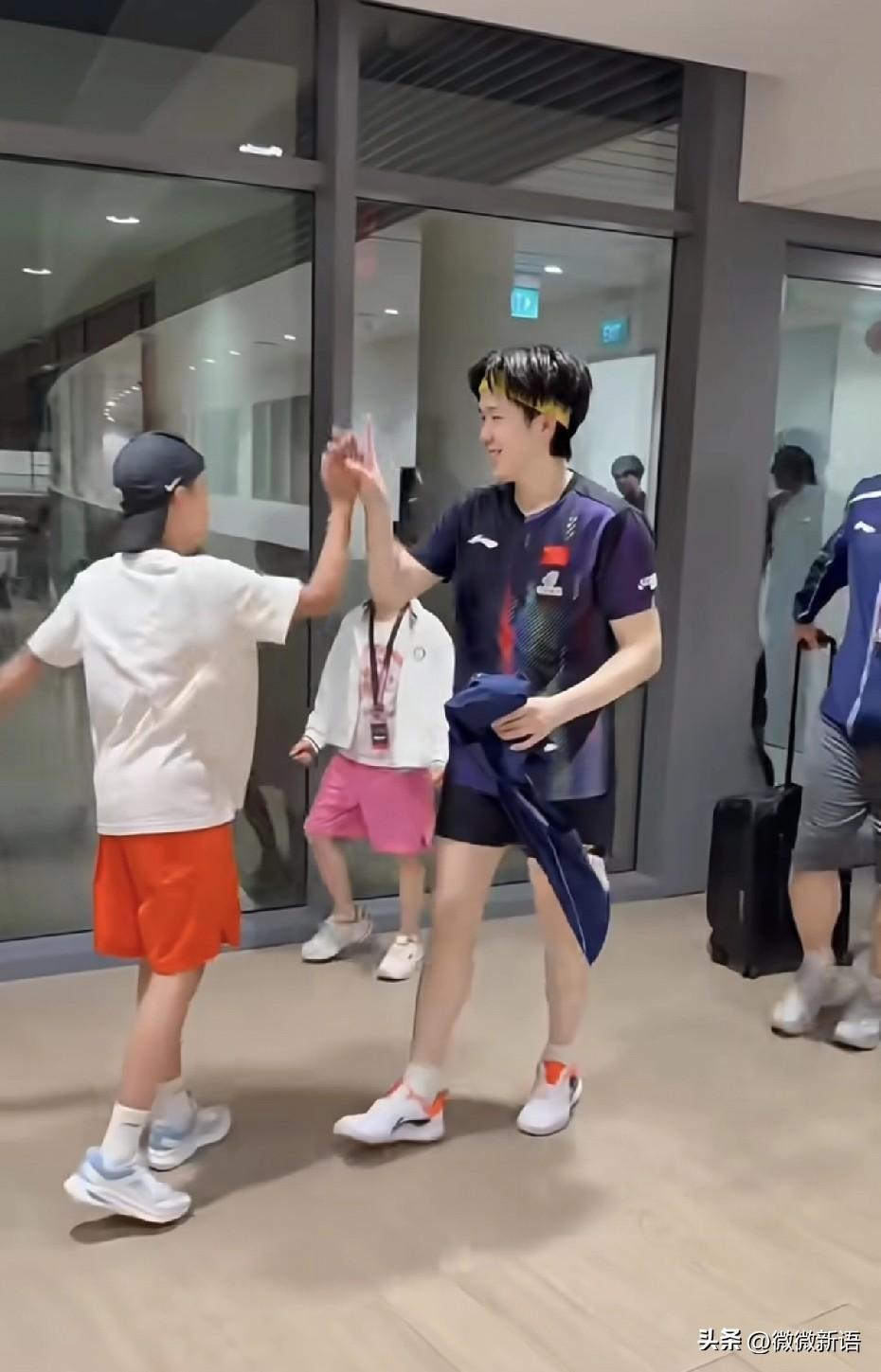 海螺看楚钦真的是星星眼呀! 海螺是真的很喜欢楚钦哥哥,楚钦哥哥也喜欢摸小海螺的头。今年的新加坡大满贯赛,小雅带着海苔和海螺去新加坡看比赛,还带着俩孩子出去玩了,兄弟俩玩的也很开心。 王楚钦打完比赛后,在采访的时候海螺一直盯着楚钦哥哥看,等着采访结束后,海螺一直跟在楚钦哥哥的身后。楚钦摸了摸海螺的头,出来和海苔击掌了,海苔又长个儿了。小雅还发了海苔和海螺看林诗栋、王楚钦比赛时的画面,兄弟俩很卖力的鼓掌,知道孩子和媳妇儿在现场,王皓还回头看了一眼,小雅正好拍到他。 这次新加坡之旅海螺和海苔也收获满满,这是海螺第一次出国,回到学校又可以跟小朋友讲讲他在国外的故事了。王皓家的两个儿子都很懂事儿,现在出去玩,他们都会照顾妈妈。海螺学乒乓球,海苔打高尔夫,感觉两个孩子未来都会很好的。马上就是重庆冠军赛,王皓就又要跟赛了,海螺开学了,只能在电视上看楚钦哥哥的比赛了。