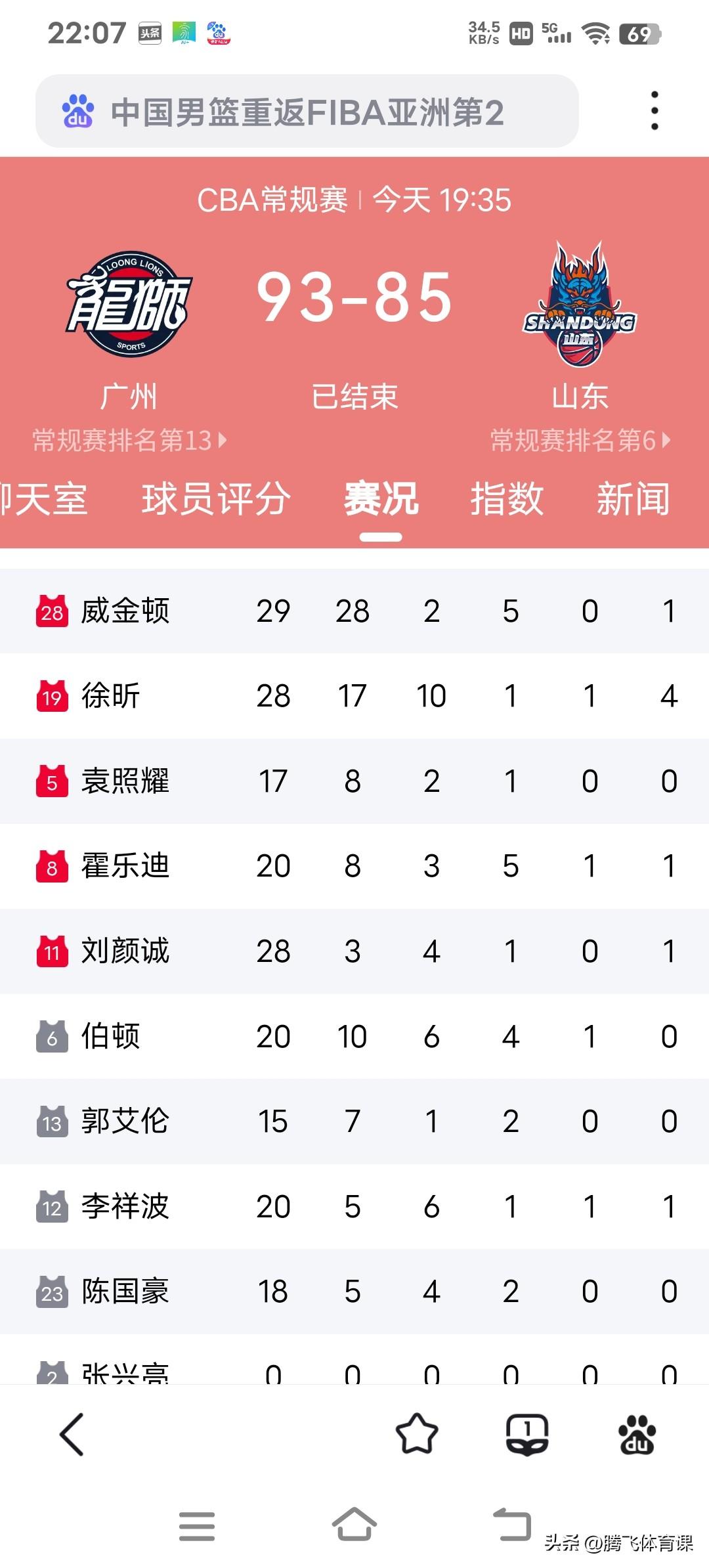 广州主场93:85击败山东,表扬赢球的4大功臣: 1.威金顿--全场贡献28分2篮板5次助攻,全队的进攻节奏完全掌握在他手里,他就是球队场上的指挥官,多次与徐昕挡拆配合空中暴扣。 2.徐昕--全场贡献17分10篮板1次助攻4次盖帽,简直就是他一人完爆山东队内线,进攻,篮板两手抓。 3.郭艾伦--仅出战15分钟就受伤退赛,全场贡献7分1篮板2次助攻,只有郭艾伦在场想突破,山东队就必须上双人包夹防守,郭艾伦的作用并不在数据上,而且他在场上受到的牵制力给球队制造空位投篮空间。 4.伯顿(新外援)CBA首场比赛贡献10分6篮板4次助攻1次抢断。 希望郭艾伦伤病无大碍,能够及时健康回归赛场!