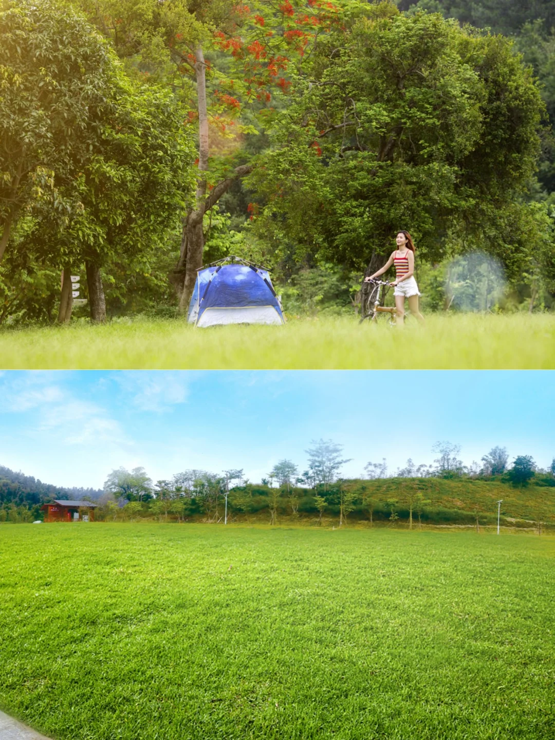 低角度仰拍:躺草坪用广角,收获花海包围感