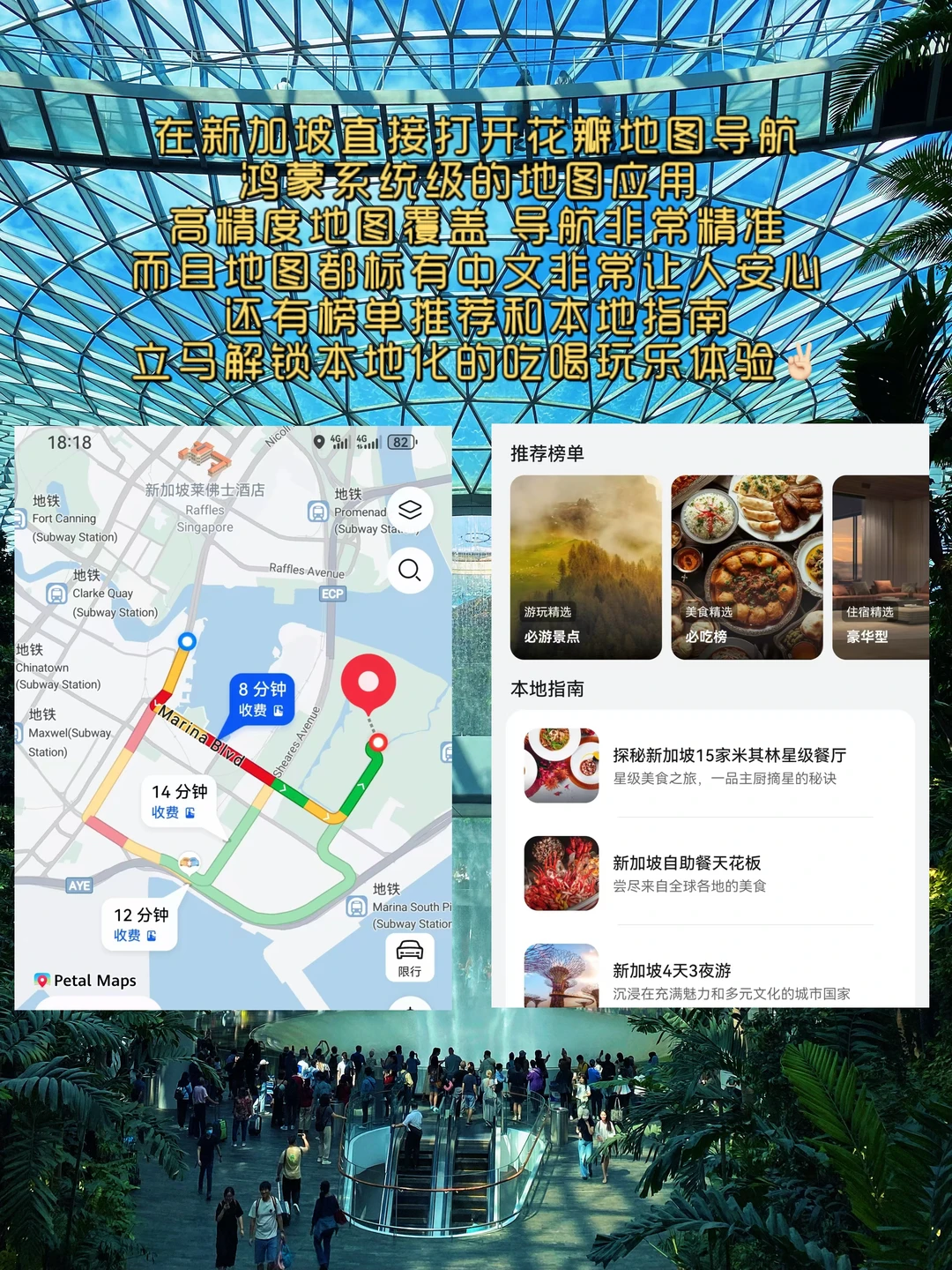 在新加坡游玩景点时,看不懂路线,我就打开花瓣地图帮我导航,中文界面一目了然,谁懂在国外看到中文真的很安心。全程都是中文语音导航,而且非常精准,在各种小巷子穿梭也不会失灵迷路,我在新加坡就这样跟着导航顺利citywalk了一天。花瓣地图上面还有榜单推荐和本地指南,跟着上面的推荐成功解锁了本地化的吃喝玩乐体验。