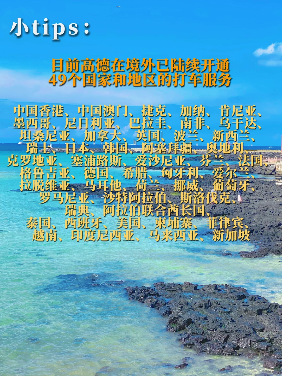 对了,现在高德已经陆续开通了49个国家和地区的打车服务了,出国旅游越来越方便✌🏻