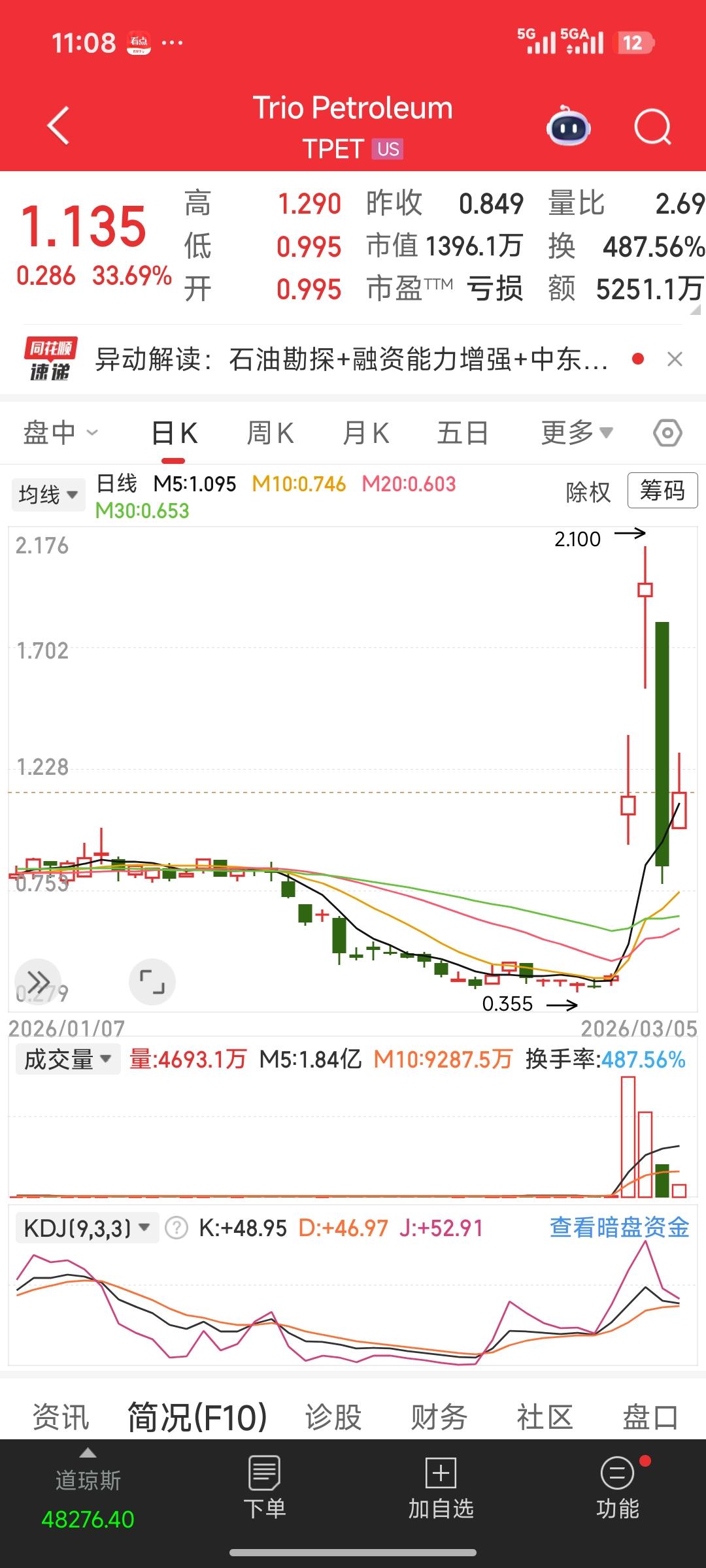 自美伊开战以来,美股的油气概念股、尤其是小盘油气概念股短期内快速上涨,涨幅将近10倍。不过昨天出现大幅回调,今晚油气概念股美股又大幅异动、强势拉升。从美股油气股的这一系列表现来看,再结合布伦特原油期货今日也大幅上涨,明天A股的油气概念股应该稳了,重新发起上攻的可能性极大。 油气股上扬 美股石油股 石油概念股 石油类股票 港股石油股 美股五连涨 石油能源股 伊朗概念股 中东股市 伊朗股市 煤炭石油板块 美股黄金股 油气行情 油气资源板块 建仓美股