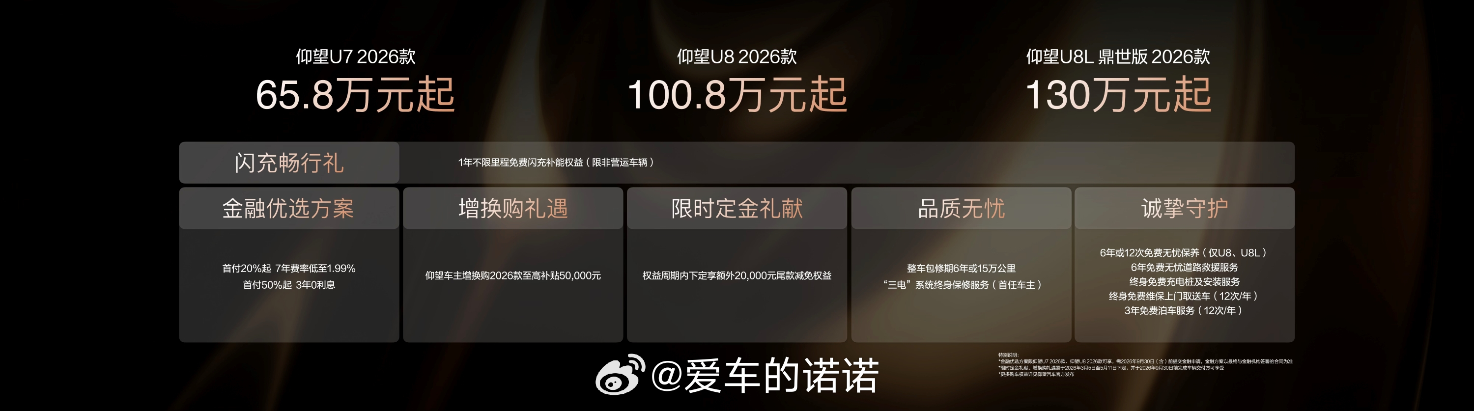 比亚迪第二代刀片电池暨闪充技术发布会上,比亚迪的高端品牌仰望动静不小,2026款