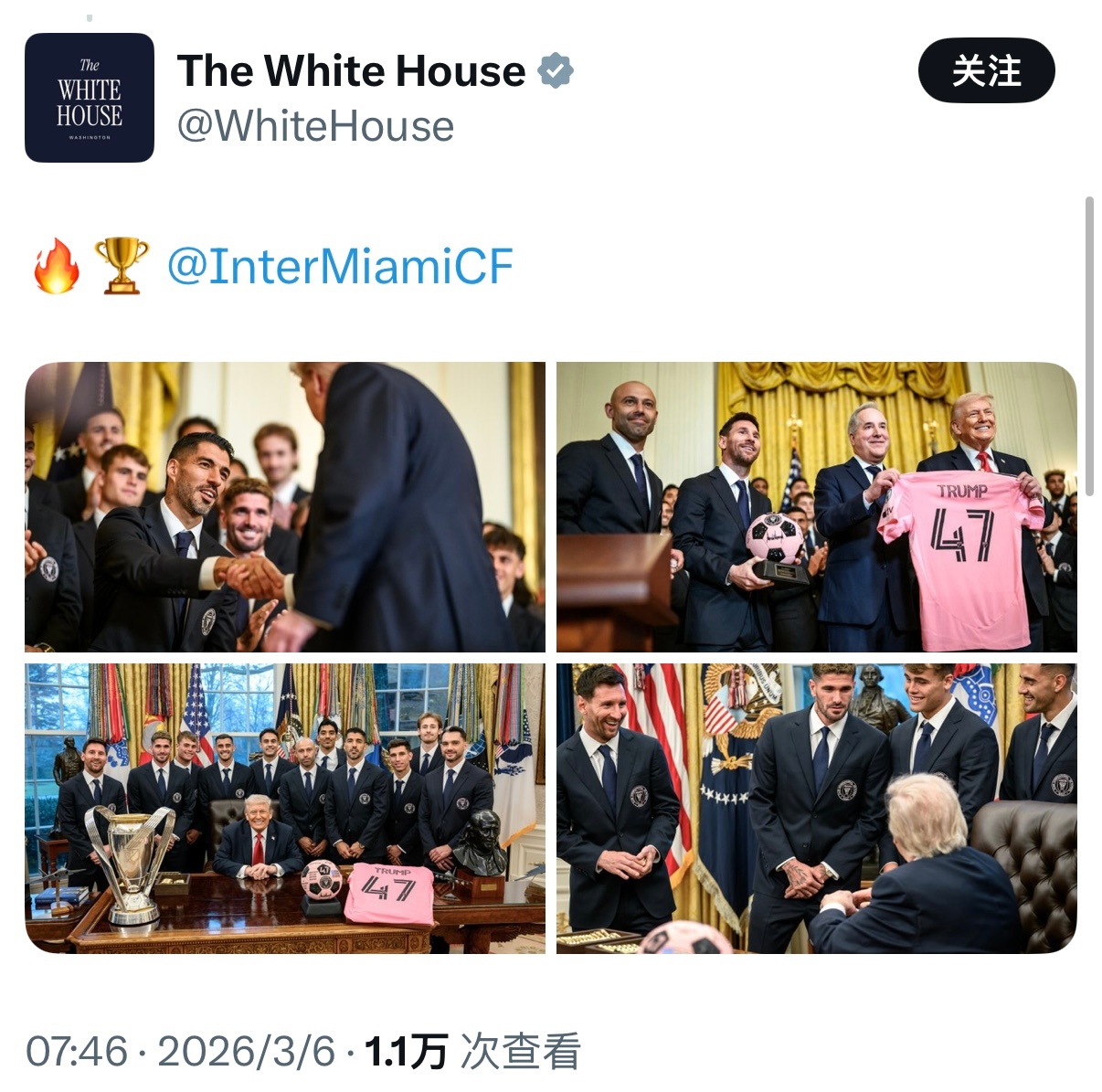 白宫推特更新梅西和迈阿密国际照片p7是特朗普和梅西、德保罗开玩笑梅西