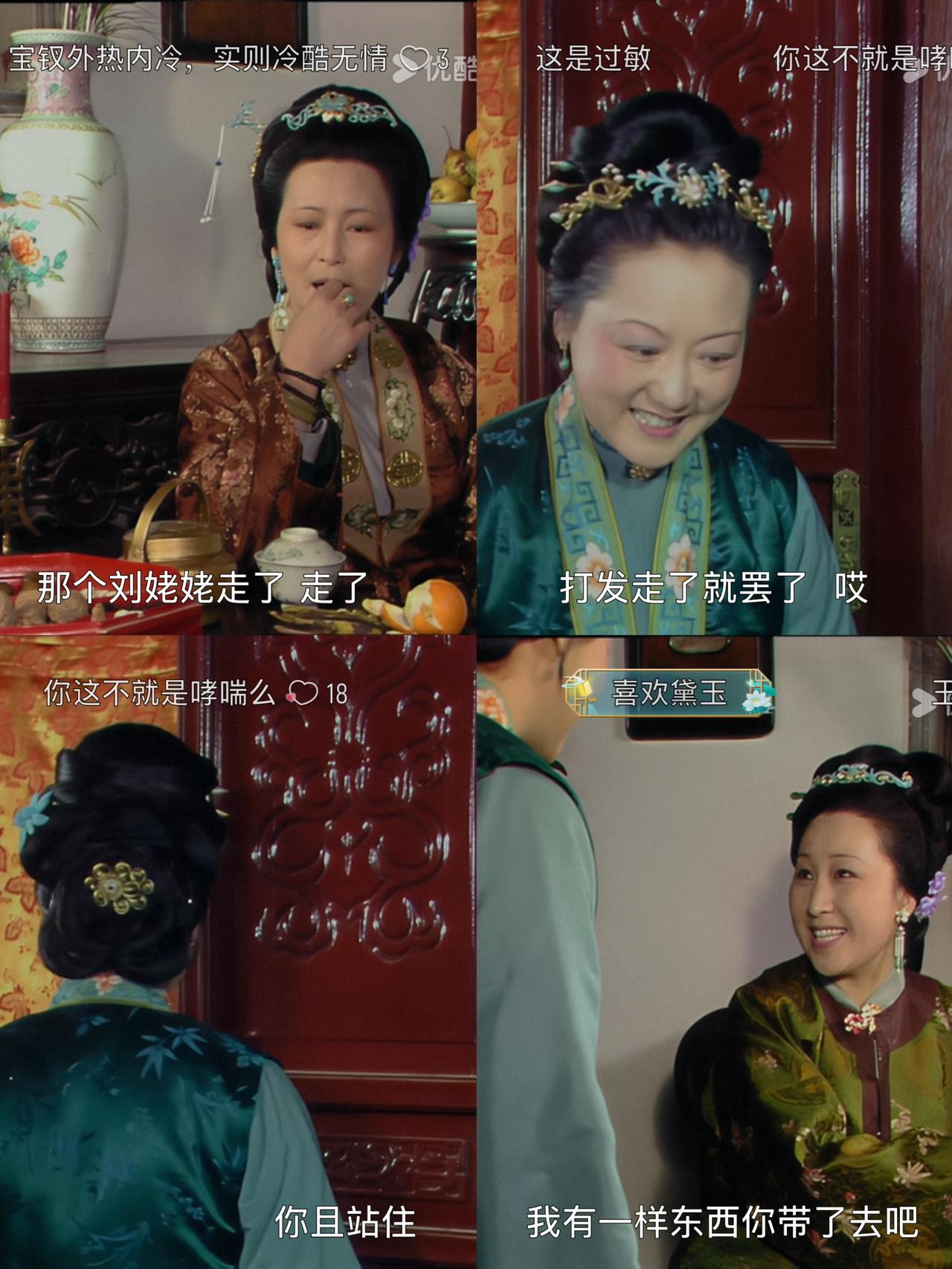 她在富太和仆人间切换自如,有两副面孔周瑞家的在刘姥姥面前摆富太的谱。 有小丫鬟端茶倒水伺候,对话间不经意就秀起到金手镯和碧玉的戒指。 同时显摆她在贾府是做闲差:只管太太奶奶们出门的事儿。 实际上她送走刘姥姥切换成仆人模式后,挺忙的。 在回报王夫人的时候,看到王夫人和薛姨妈在聊天不敢打扰,要先去找薛宝钗拉家常。 听宝钗吹嘘“冷香丸”来历时,周瑞家的得适时送上情绪价值,递上茶水。 等到王夫人叫她,她才去回报刘姥姥的事,以为自己说完就可以转身回家,结果又被薛姨妈叫住让她跑腿送宫花。 周瑞家的在这个过程中也算从从容容游刃有余,因为她面对不同地位的人给的面孔是不一样的。 《红楼梦》刻画人物就是这么绝,周瑞家的丝滑忙一天,就知道她在贾府的生存之道。 贾府人情
