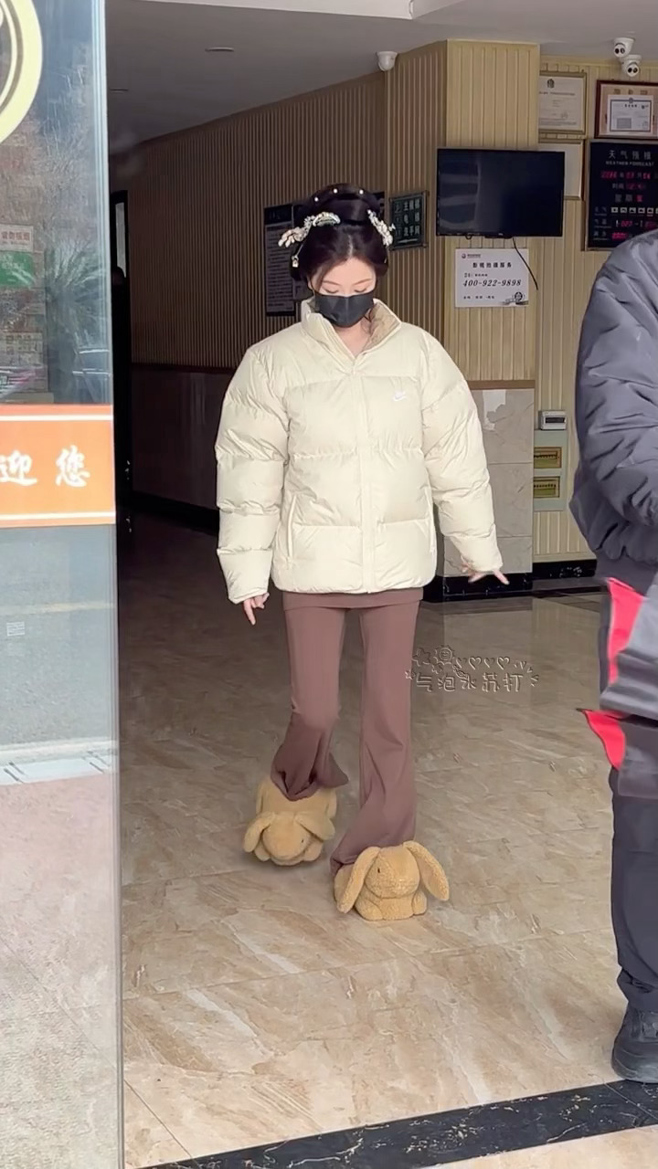 宝宝还低头看自己的小兔叽鞋
