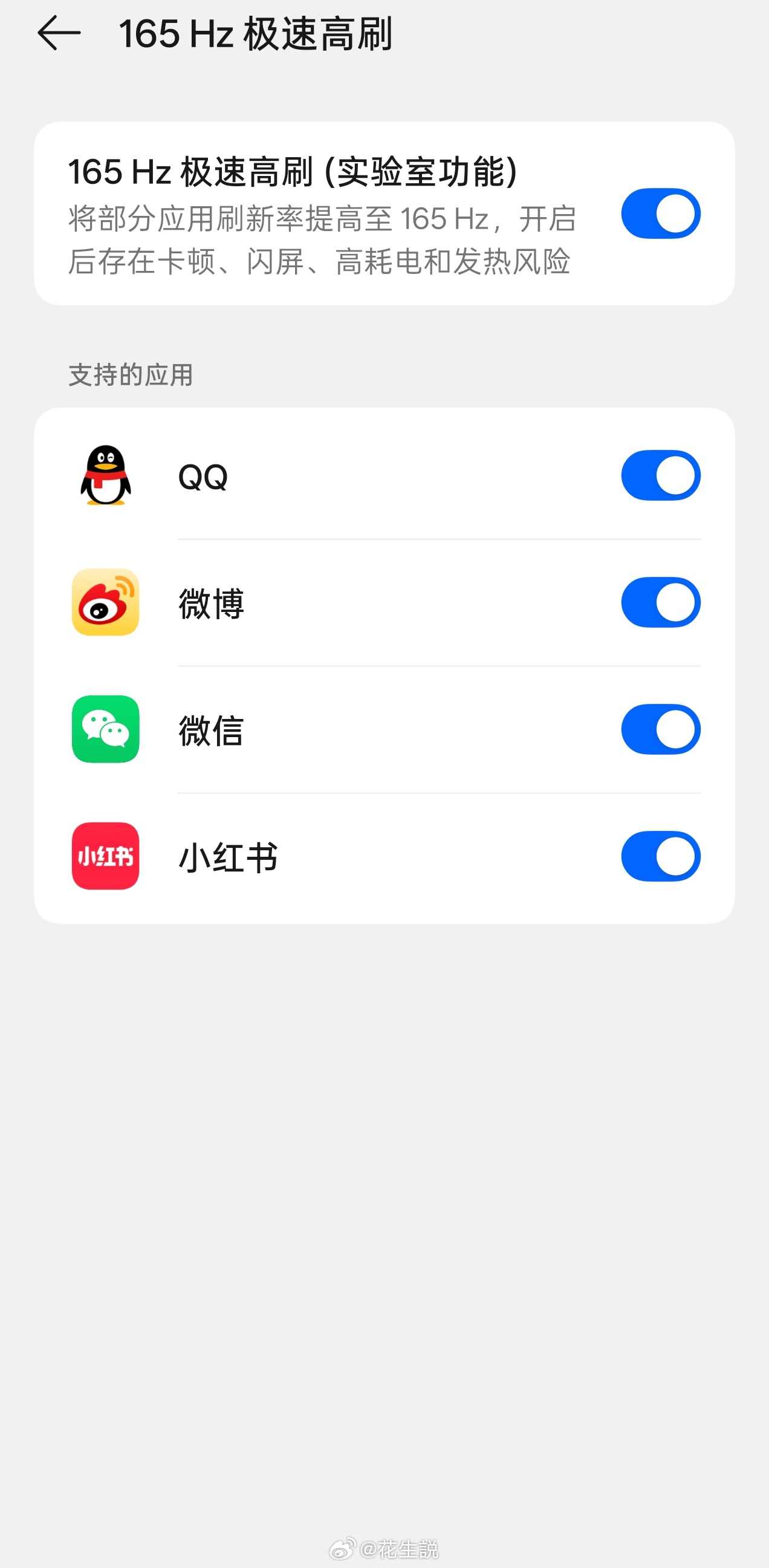 当年一加7的真全面屏90Hz带给了我们小小的震撼今年一加15更是支持了165Hz,遗憾的是只在一些游戏中支持😔但是如果你想在日常app中用到165Hz,可以在开发者中打开极速高刷就是现在仅支持这四个软件,我相信以后也会有更多软件支持