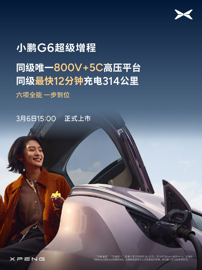 小鹏G6超级增程六项全能一步到位 小鹏G6最打动我的,是它不玩概念,只解决真实痛点。1704公里续航,说走就走,不用焦虑充电桩在哪;增程器无感介入,安静得像开纯电;430公里纯电覆盖日常,一周一充刚刚好。空间不虚标,后排装安全座椅还能坐俩大人,露营装备随便塞。最狠的是,L4级智驾下放到20万内——不玩期货,现在就给你。爆胎稳行、冰雪AES,全是真实场景的底气。六边形战士,不是堆料,是每项都刚好打在痛点上。这种踏实感,才是家庭想要的。
