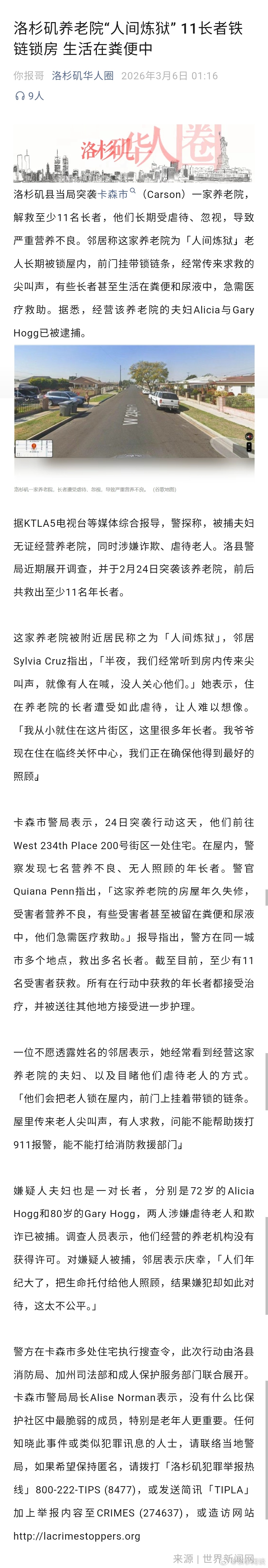 【洛杉矶养老院“人间炼狱” 11长者铁链锁房,生活在粪便中】