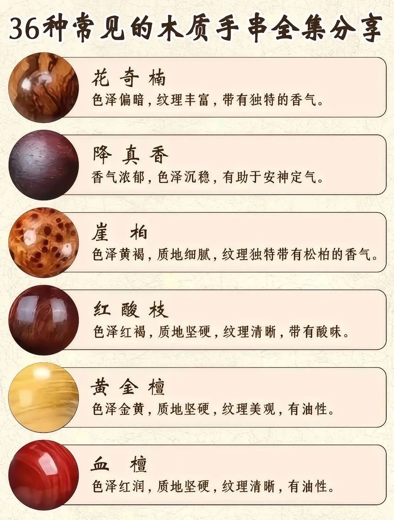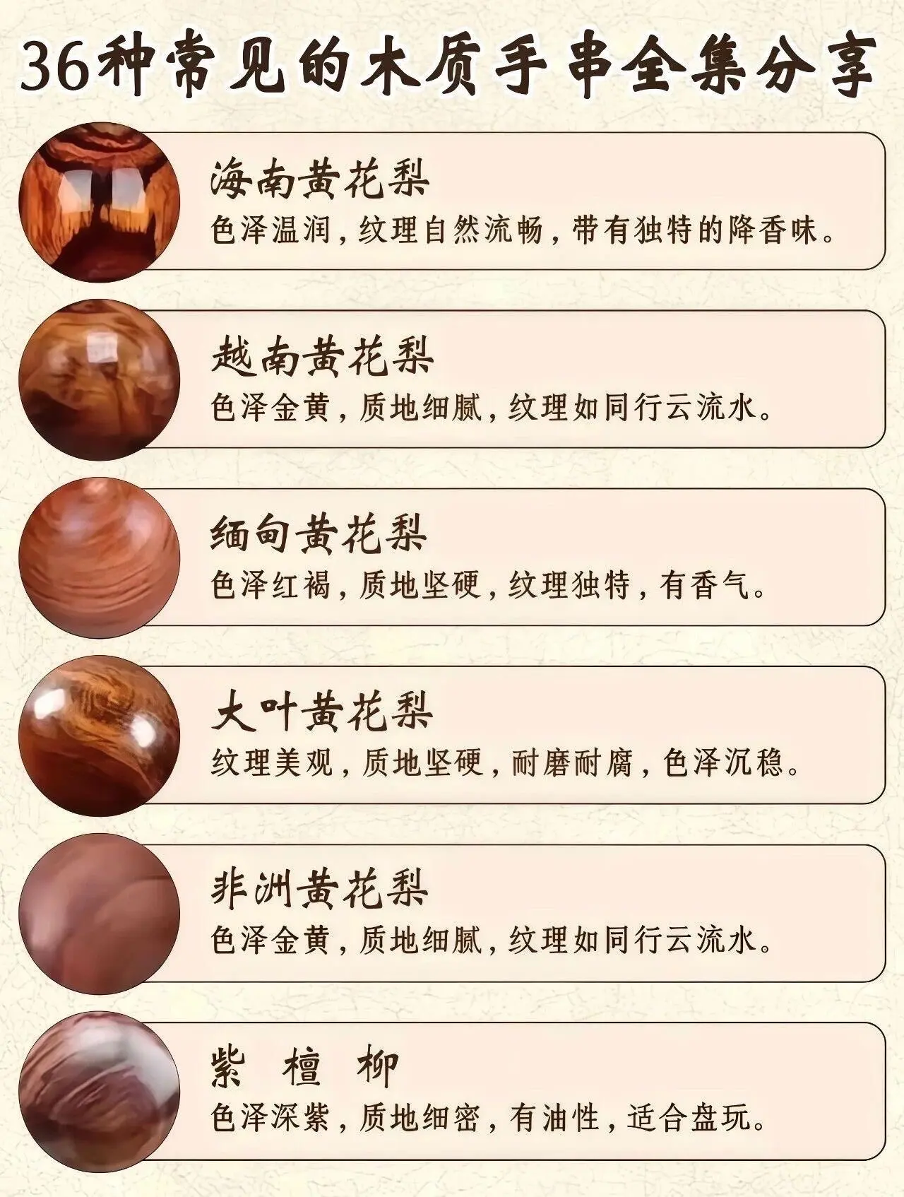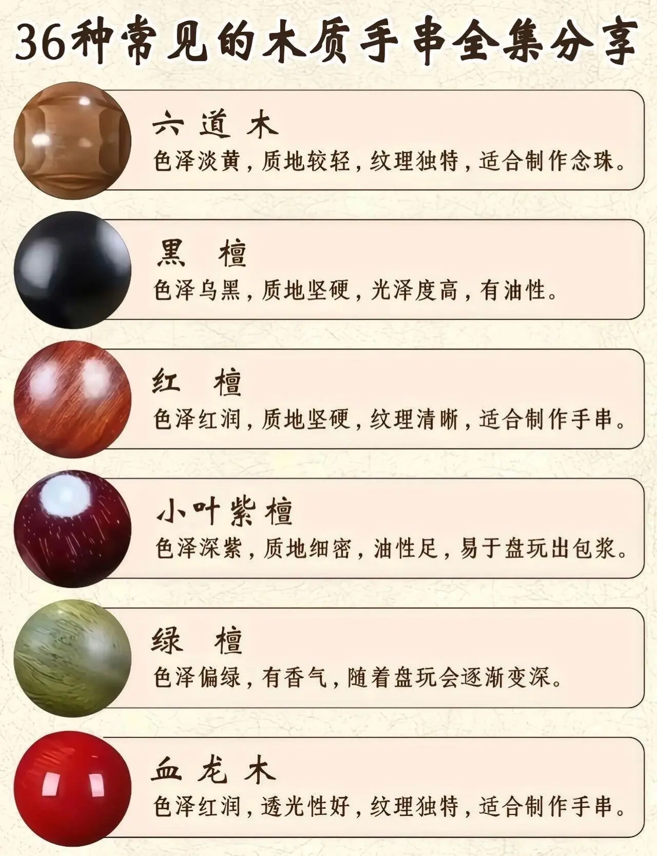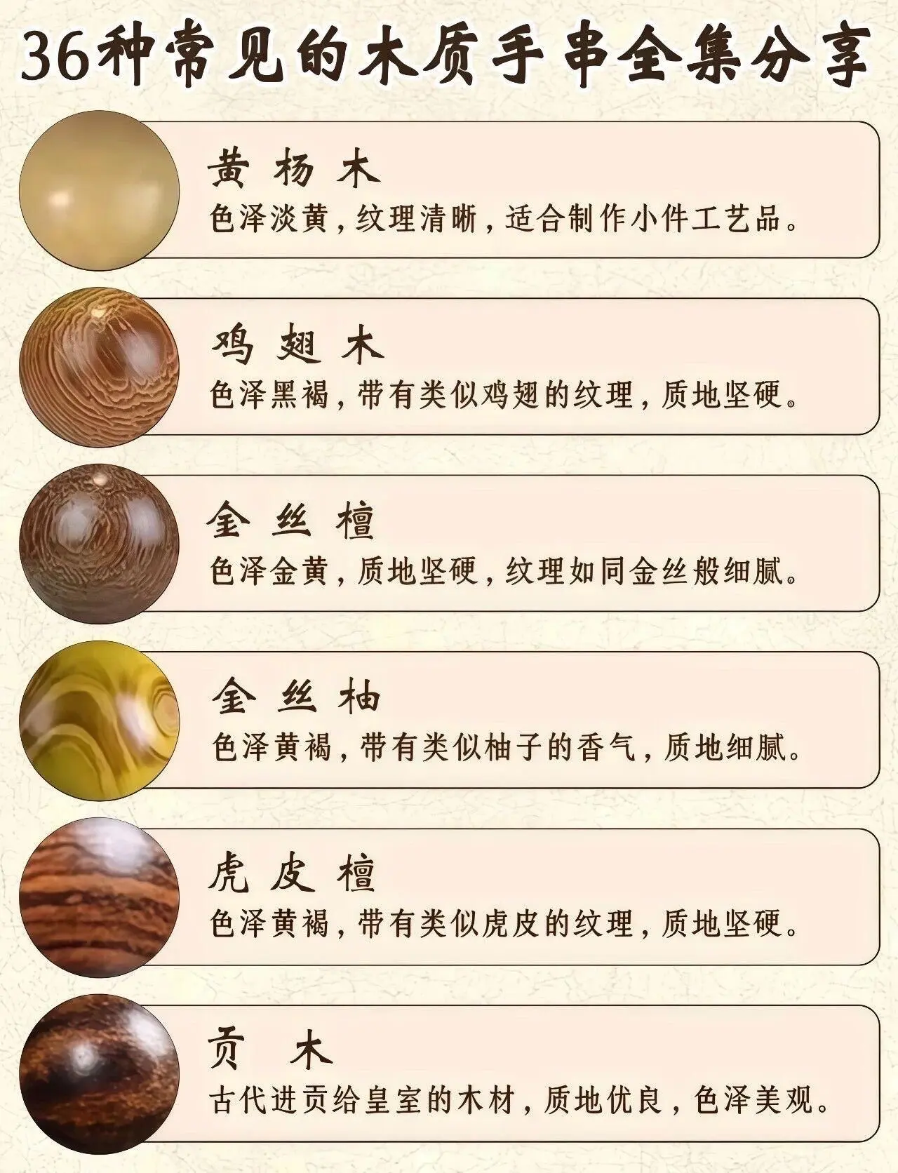 玩木材类高清毕业图鉴。36种木材是市面上常见的,基础特点如图,可以做一个指导参考,有不清楚的问题,可以进一步沟通。