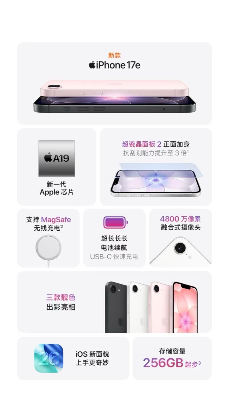 苹果17e太香了!A19芯片+iOS 26,用着肯定顺溜~双快充告别续航愁,48