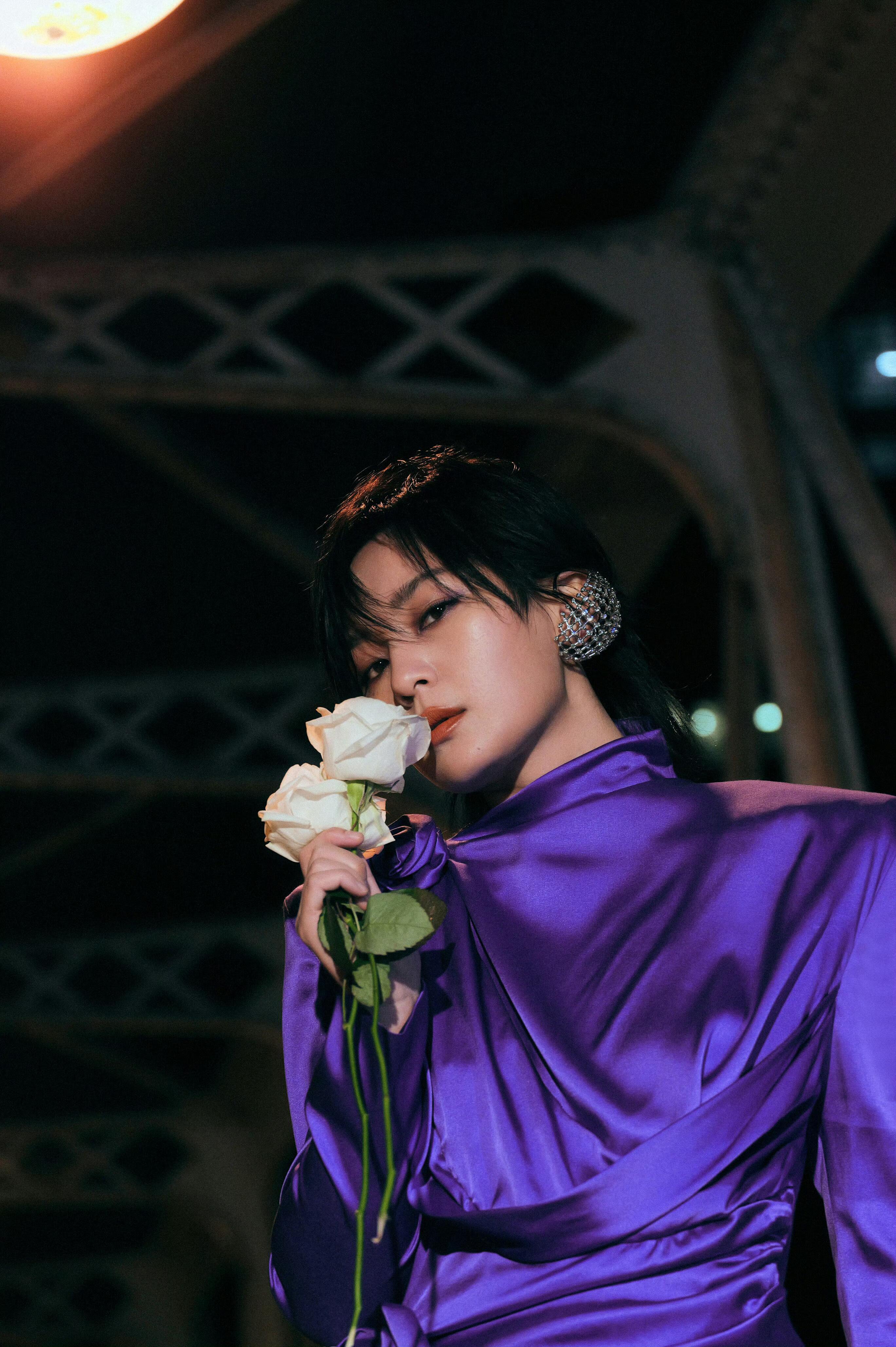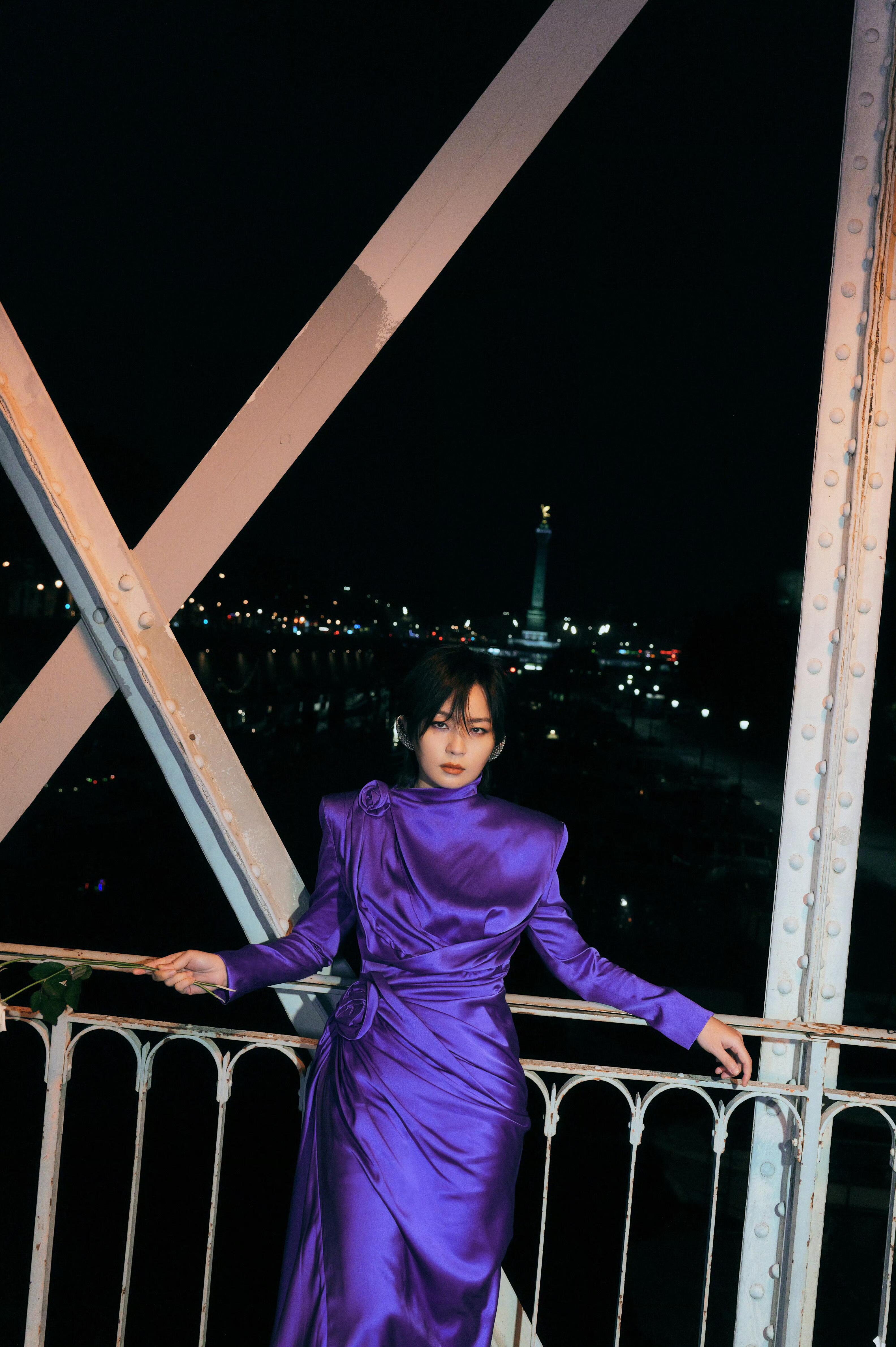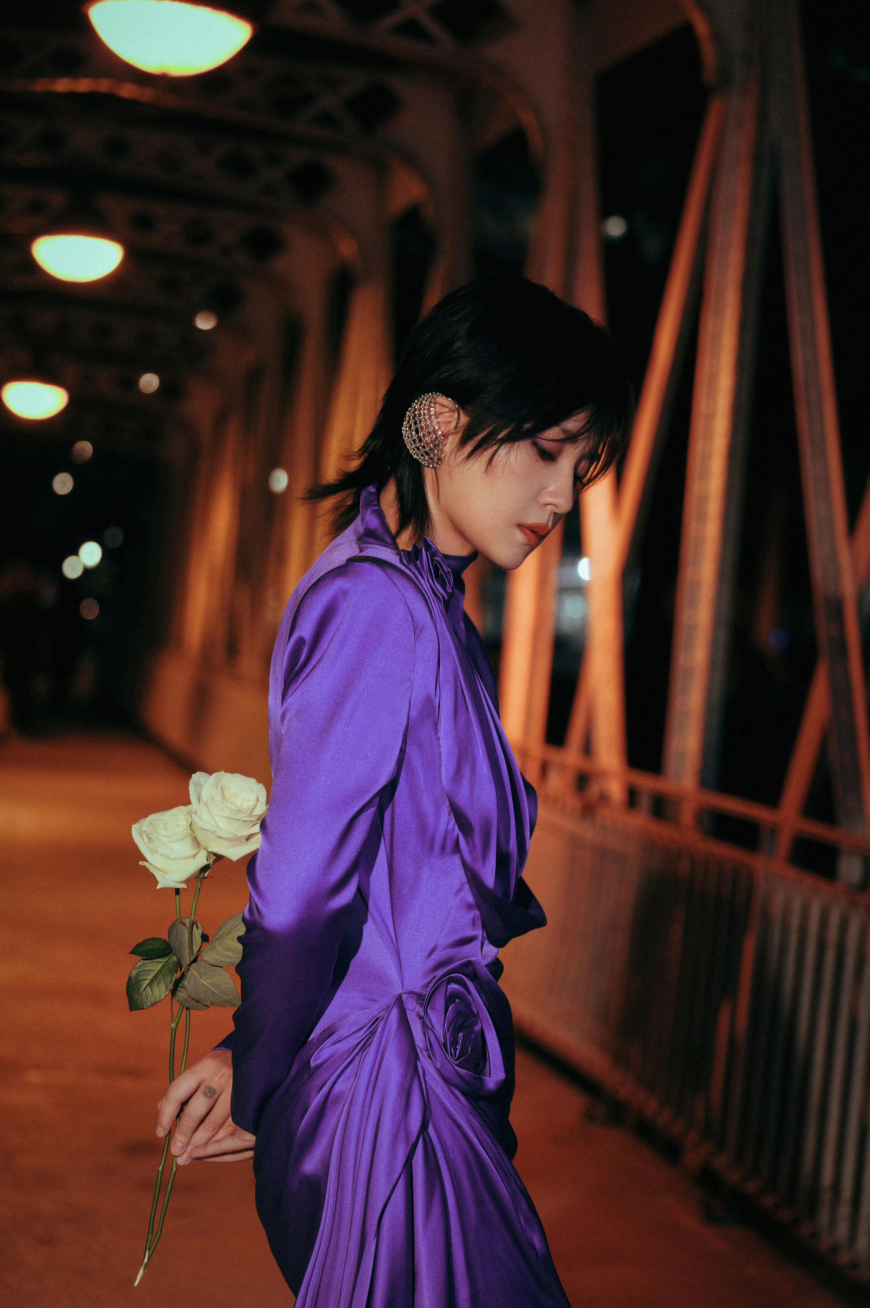 周笔畅巴黎秒变紫薯精昨天是帅气霸总,今天是温柔女神,周笔畅紫裙造型美出圈,利落剪裁超显气质,手捧白玫瑰太迷人