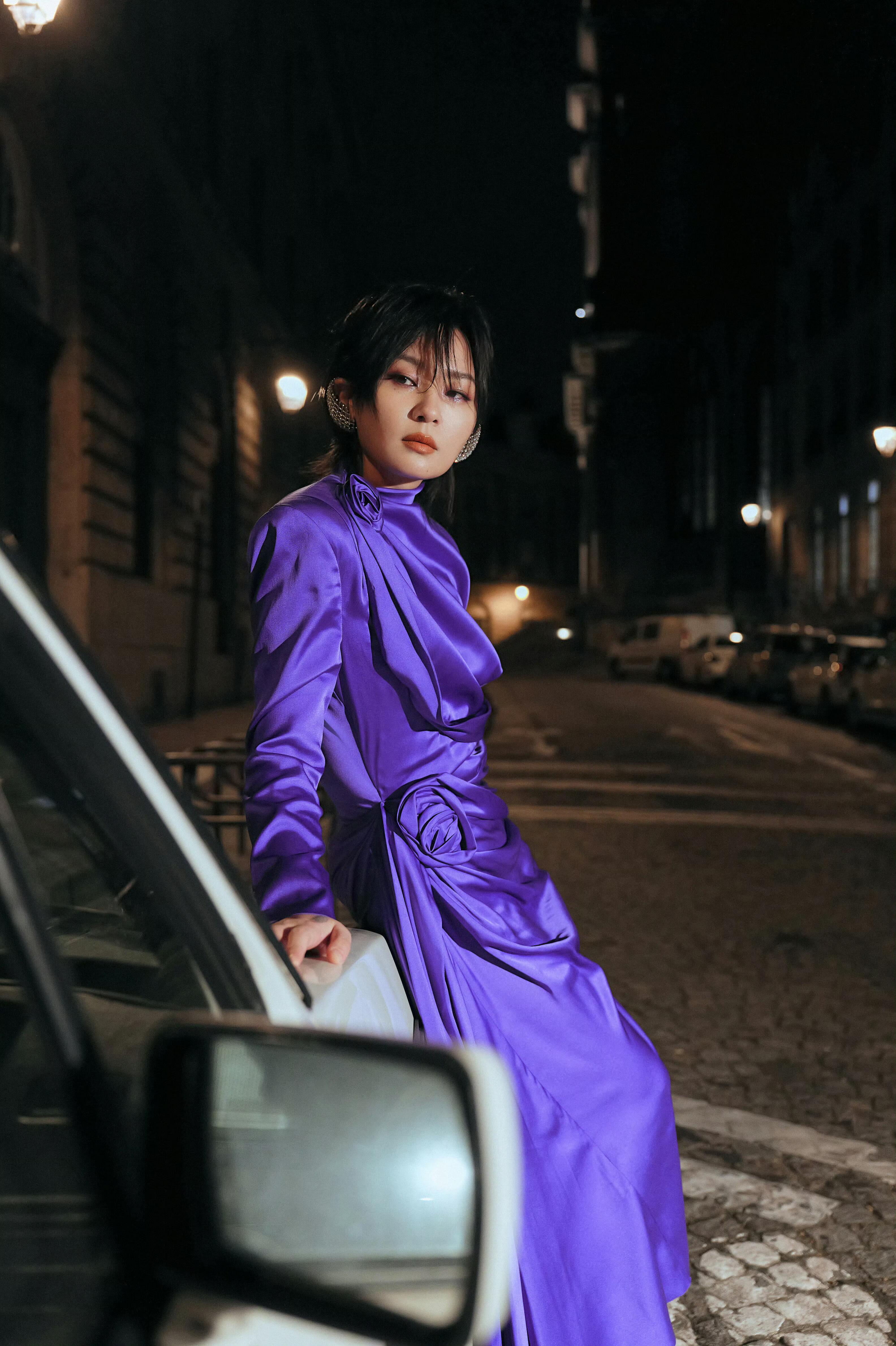 周笔畅巴黎秒变紫薯精昨天是帅气霸总,今天是温柔女神,周笔畅紫裙造型美出圈,利落剪