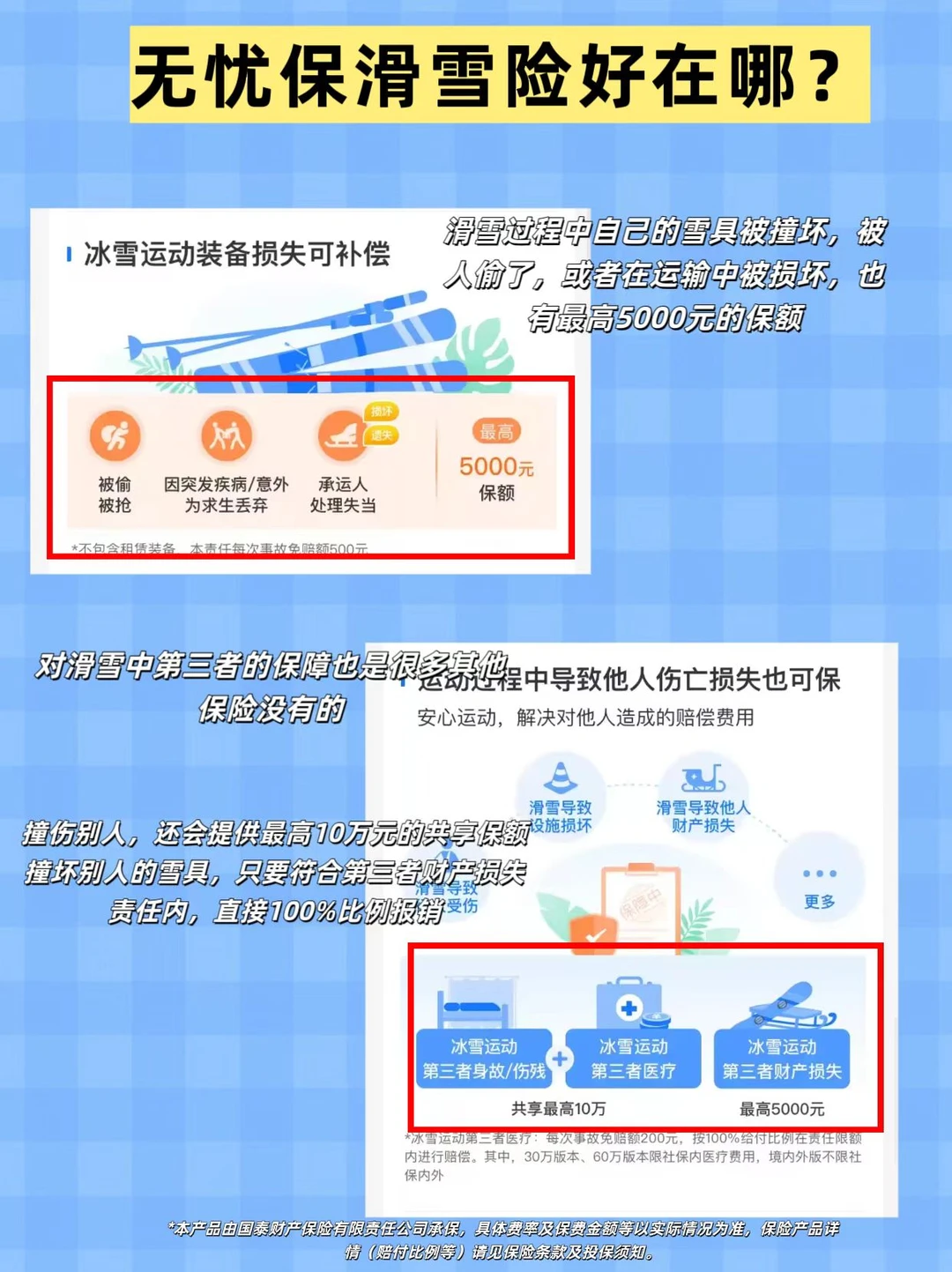 最开始为了安心买过一家贵的,结果仔细一看条款心凉半截——只保意外身故和伤残,真在雪场撞了人或者弄坏雪具,人家根本不管。这保了跟没保有什么区别?