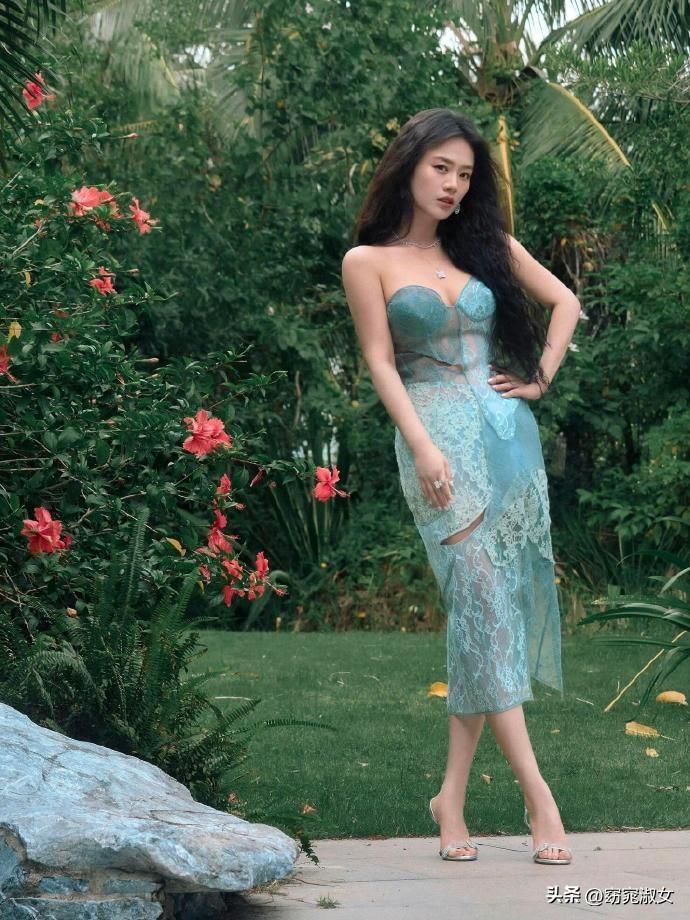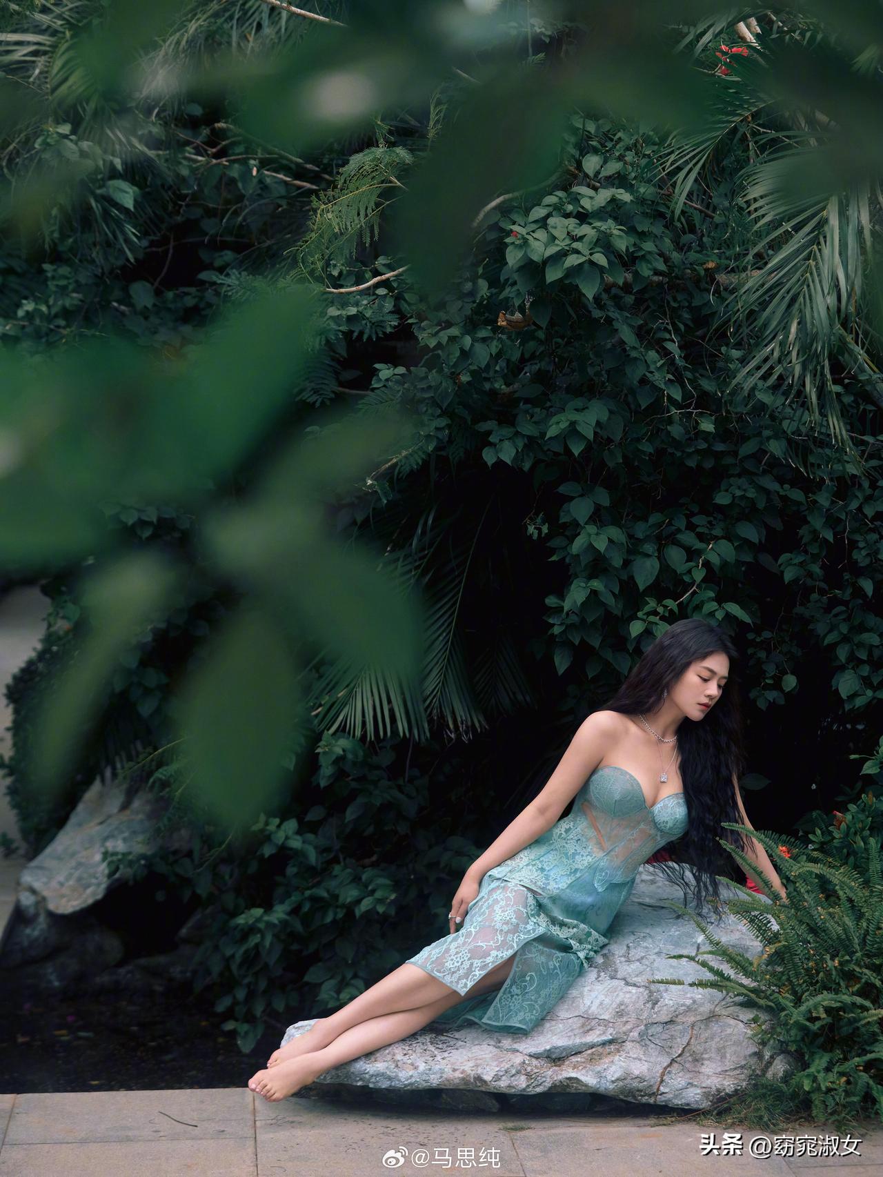 马思纯真是老天爷赏饭吃,身材丰满匀称,身穿薄荷绿色长裙好显白,脸蛋精致小巧,皮肤