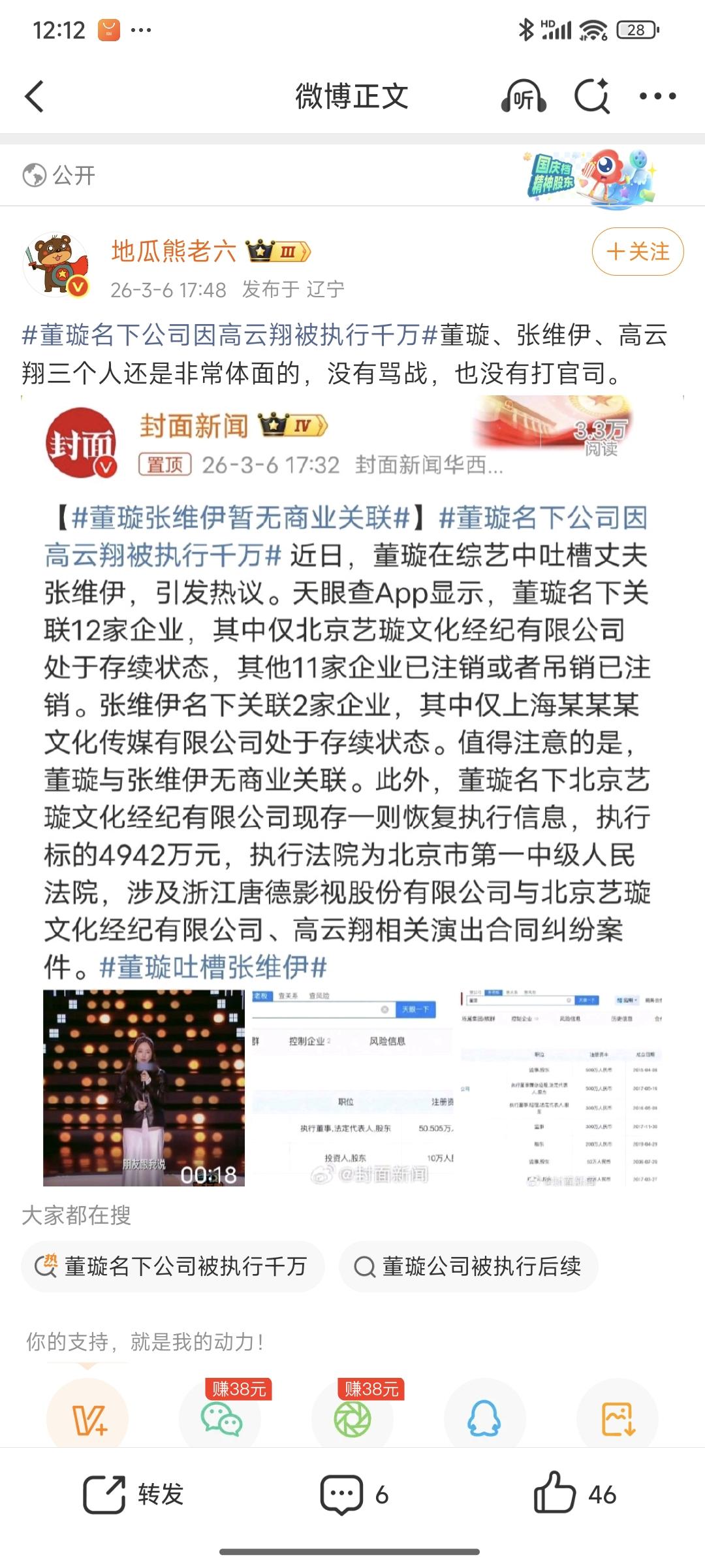 董璇还在替高云翔填千万烂账?综艺里的清醒,全是被坑出来的 3月6号,董璇又因为债务的事引发了热议。有网友扒出,她名下的经纪公司,还有近千万的债务没结清,需要在2026年之内全部还完。 好多人看到消息第一反应都懵了:不对啊?她这两年综艺没少上,代言也接个不停,镜头前看着光鲜亮丽的,怎么还背着这么大的包袱? 说真的,董璇最近的曝光度确实不低。刚播完的综艺里,她带着女儿小酒窝一起出镜,母女俩的互动圈了不少粉,好多人夸她把孩子教得懂事又大方。但也有眼尖的观众发现,节目里董璇几乎是走到哪带到哪,全是自己代言的产品,连女儿穿的衣服,都是她合作的国产品牌——说穿了,就是带娃录节目都不敢歇着,见缝插针地完成商务KPI,是真的拼。 更让人感慨的,是节目里聊到婚前财产清算的那段。当时她和现任张维伊聊起这个话题,态度谨慎到近乎较真,一笔一笔都要算得明明白白。那时候弹幕还有人吐槽她“太精明、太见外”,现在再回头看,哪是什么精明啊,分明是被上一段婚姻坑怕了,踩过的深坑,再也不想踩第二遍了。 这笔烂账的源头,不用多说,大家都知道是高云翔。当年他在澳洲出事,董璇第一时间飞过去处理,砸了不知道多少钱保释、打官司,该做的不该做的,全做尽了。后来两人离婚,所有人都以为她总算能把烂摊子撇干净了,谁能想到,高云翔早年签的演出合同出了纠纷,最后债务全落到了她名下的公司头上。 总标的4942万的债务,到现在她已经还了三千多万,剩下的1070万,要在今年之内结清。这串数字看着只是冷冰冰的字符,可背后是她这几年连轴转的通告,是不管合不合适都得咬牙接的代言,是连带娃上节目都要硬挤时间带货的拼命,这些熬过来的苦,只有她自己清楚。 至于现任张维伊,两人恋情曝光后一直很低调,可明眼人都看得出来,这笔千万级的债务,他实在是帮不上什么忙。不是不想帮,是真的能力有限。对普通演员来说,要填上这么大的窟窿,根本不现实。 消息传开之后,评论区直接炸了。有网友说的一句话很戳人:董璇、高云翔,还有高云翔的现任张维伊,三个人到现在都体体面面的,没有公开骂战,没有互相扯皮的官司,太难得了。 但更多人,是真心替她惋惜。谁还记得,当年《雪花女神龙》里的上官燕,是多少人心里的白月光。她在事业最红的时候嫁给高云翔,以为是嫁给了爱情,结果最后落得一地鸡毛。如今47岁了,还要拼尽全力,为别人犯的错买单。 有人说她是当年识人不清,可人生在世,谁又没看走过眼呢? 其实董璇这件事,最让人戳心的,从来不是那千万债务,而是那种从头到尾无人可依的无力感。前夫挖的坑,要她来填;现任有心无力,帮不上忙;到最后,能指望的,只有她自己。 节目里她说过一句话:“我现在特别踏实,因为我知道靠自己能行。”语气平平淡淡的,却听得人心里发酸。 哪有什么天生的清醒精明,全都是被生活逼出来的小心翼翼。1070万,对普通人来说是一辈子都赚不到的天文数字,对董璇来说,是今年必须咬牙翻过去的一座山。 只希望等她翻过这座山之后,往后的日子,能真的轻松一点,不用再这么拼命了。