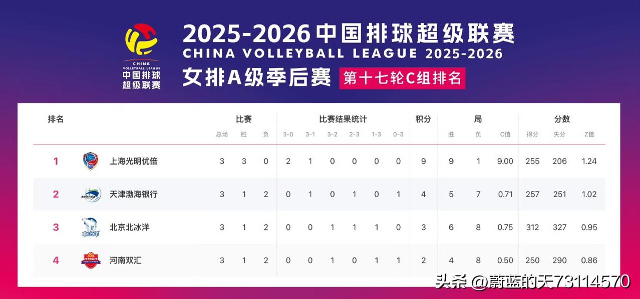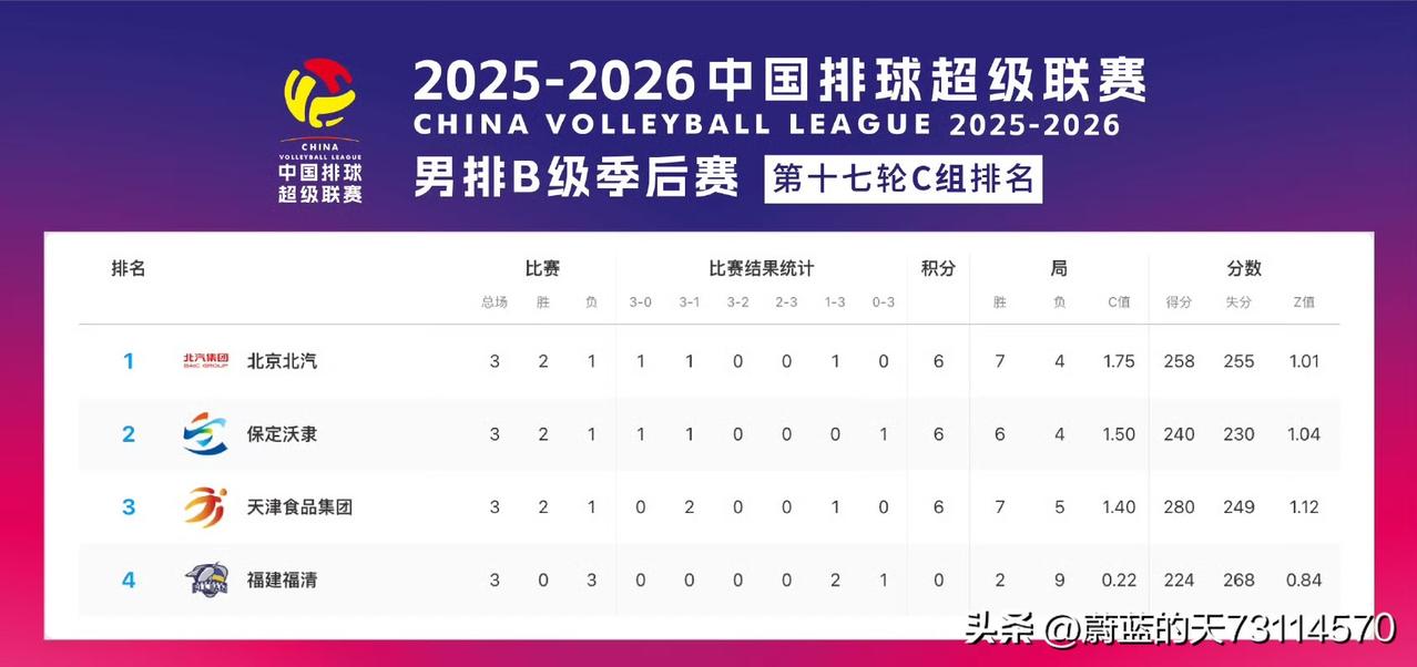 [玫瑰]本赛季男女排A级联赛,北京男女排与天津男女排算是硬钢上了!打进四强可以说是非此即彼,谁输谁就会大概率无缘四强。 一,先看男排A级赛C组积分: 1,北京北汽:2胜1负,7/4,积6分。 2,河北保定:2胜1负,6/4,积6分。 3,天津食品:2胜1负,7/5,积6分。 4,福建福清:0胜3负,2/9,积0分。 C组中:北京、河北、天津,都有机会,但综合实力河北略强,应占一个晋级名额,而北京与天津是全华班与引援队的比拼,两队实力相当,晋级应是2选1。 D组中形势明朗,上海、青岛晋级是大概率。 二,再看女排A级赛C组积分: 1,上海:3胜0负,9/1,积9分。 2,天津:1胜2负,5/7,积4分。 3,北京:1胜2负,6/8,积3分。 4,河南:1胜2负,4/8,积2分。 C组中:上海一枝独秀,晋级板上钉钉,天津、北京、河南都有机会,从实力上分析,晋级大概率是天津与北京女排之间2选1。 D组中:江苏、山东两队晋级无忧。 三,北京和天津男女排,最终谁能冲出重围,打进季后赛四强,还要看后三轮的表现。拭目以待。