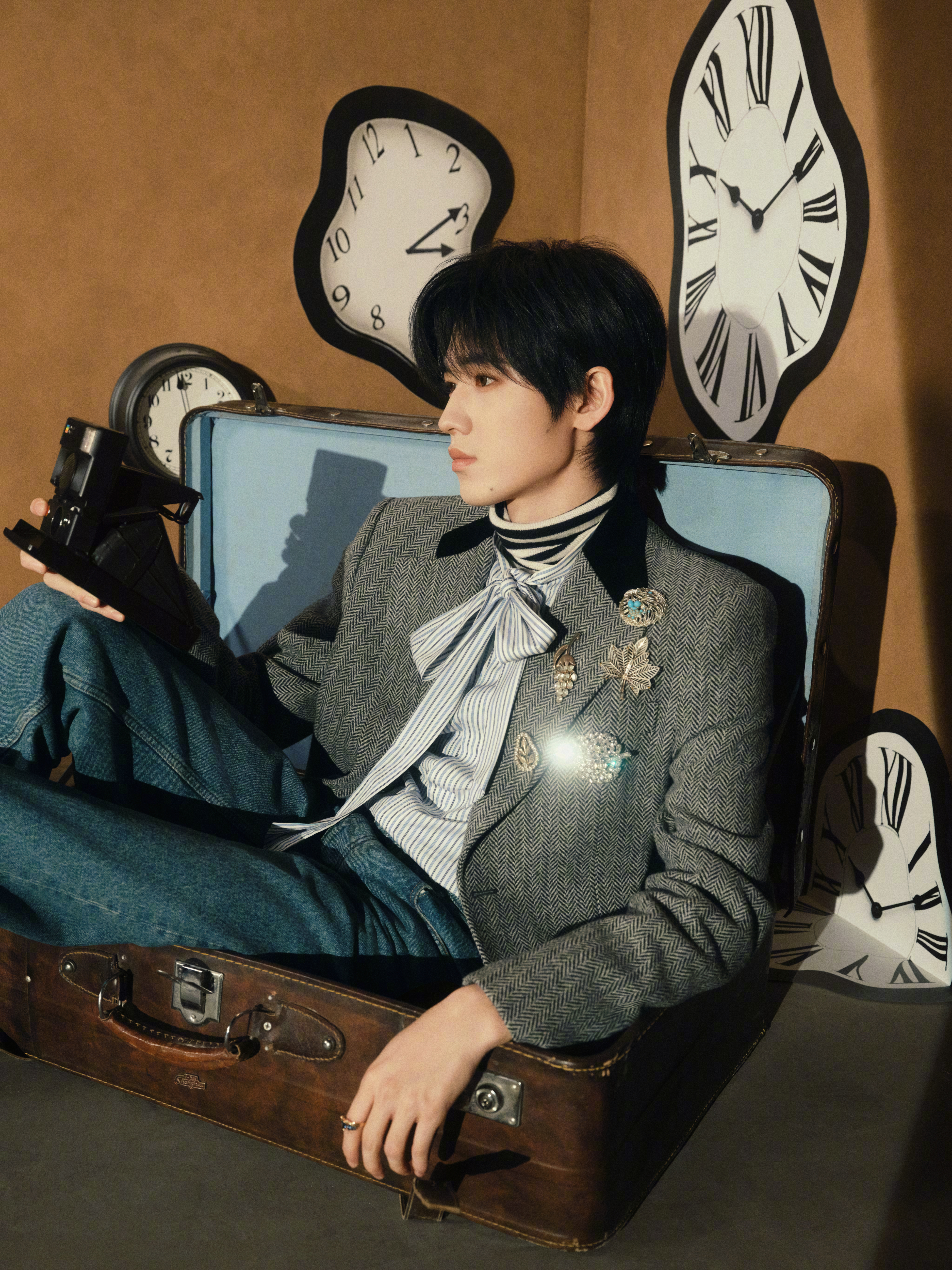宋亚轩新歌无趣生活指南概念照宋亚轩复古英伦风大片 宋亚轩新歌概念照好有故事感,扭曲时钟与复古行李箱置景独特又高级,英伦风造型精致又松弛,坐等新歌解锁更多故事!