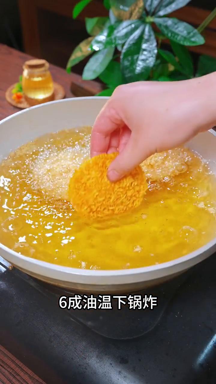 香蕉派。 我是做梦也没想到香蕉派多加了一步竟然这么好吃。楼下饭店68一份,自己动手只需要几块钱,外酥里嫩,香甜又可口。 ·准备一张大年三十吃剩的饺子皮,放一块香蕉压成泥,再盖上一张饺子皮,用祖传的叉子封边。 ·接着碗里打入一个母鸡刚下的蛋,沾上鸡蛋液,再均匀的裹上面包糠。 ·6成油温下锅炸,炸至金黄鼓起就可以捞出来了,再用刀对半切开。 美味的香蕉派就制作完成了,香甜可口,真的好吃到没朋友。 您要是学会了也赶紧点赞收藏做起来。不知道这个面包糠哪里有卖的朋友可以点我头像。