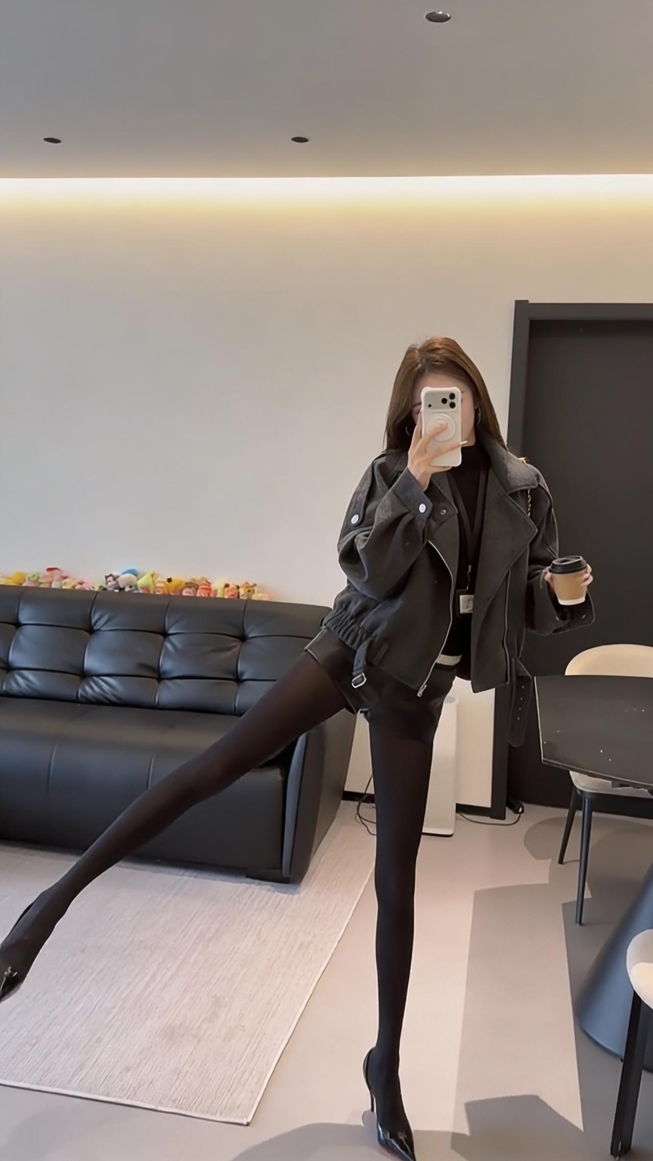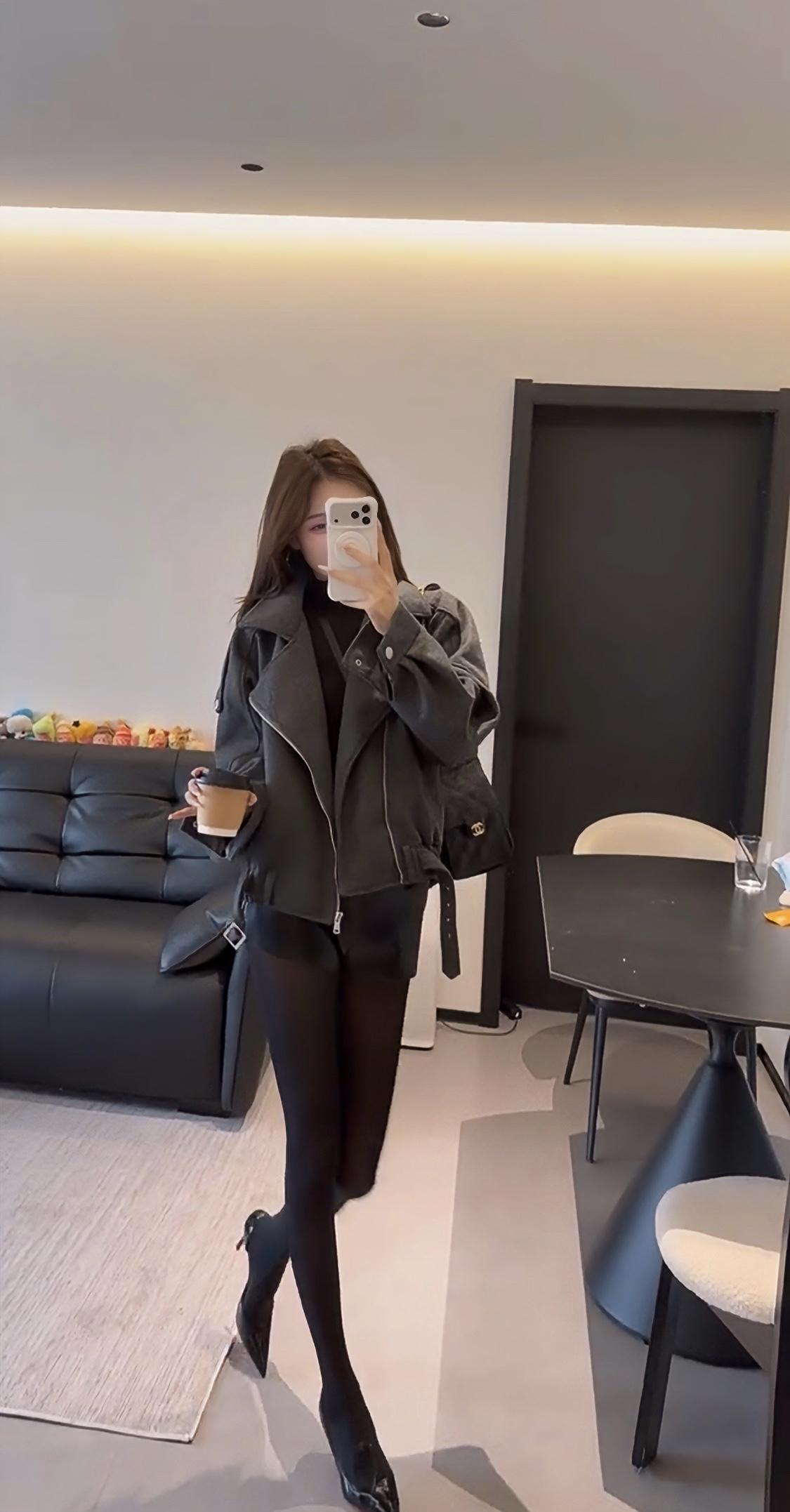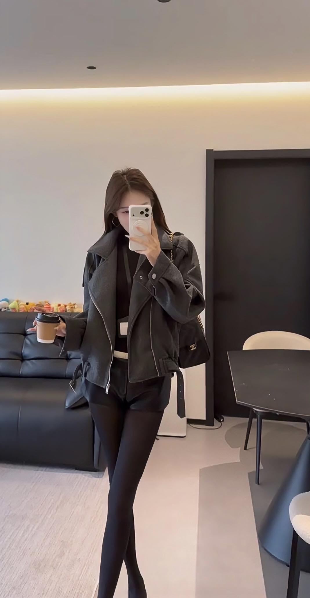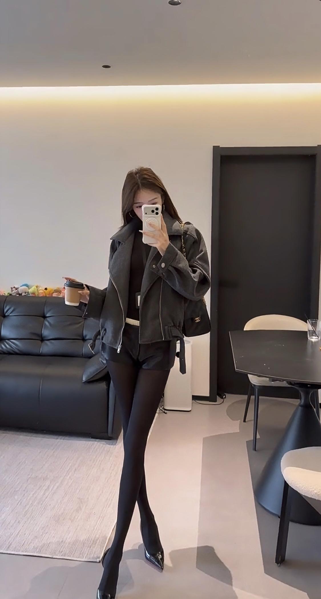 正常穿搭推荐,无不良引导。这套穿搭主打秋冬的反差感风格,核心是用硬朗质感的外套中和下半身的柔媚细节,打造出清冷又带点小性感的氛围。 • 核心单品:深灰色短款毛呢机车夹克,宽松落肩版型藏肉显瘦,翻领+金属拉链的机车元素自带酷飒气场,短款剪裁优化比例,显腿长;内搭黑色修身打底,简约不抢镜,突出外套质感。 • 下装搭配:黑色皮质短裤+黑色打底裤,皮质短裤提升精致度,黑色打底裤若隐若现的透肤感修饰腿型,同时增添女人味,避免全黑造型的沉闷感。 • 鞋履配饰:黑色尖头细跟鞋,拉长腿部线条,强化整体利落感;搭配黑色皮质单肩包,与鞋履、下装形成材质呼应,整体色调统一,高级感拉满。 这套穿搭风格灵活,适配多种场景,兼顾时髦度与实用性: 1. 日常出街/探店:简约又有记忆点,走在街头或逛网红咖啡店、艺术展馆时,回头率高,拍照出片率也高。 2. 轻社交场合:闺蜜聚会、下午茶等轻松场景,既不会过于随意,又能展现穿搭品味。 3. 通勤休闲(非严肃职场):适合创意类、休闲风职场的日常通勤,用简约的灰黑配色展现干练气质,又不会像正装那样拘谨。