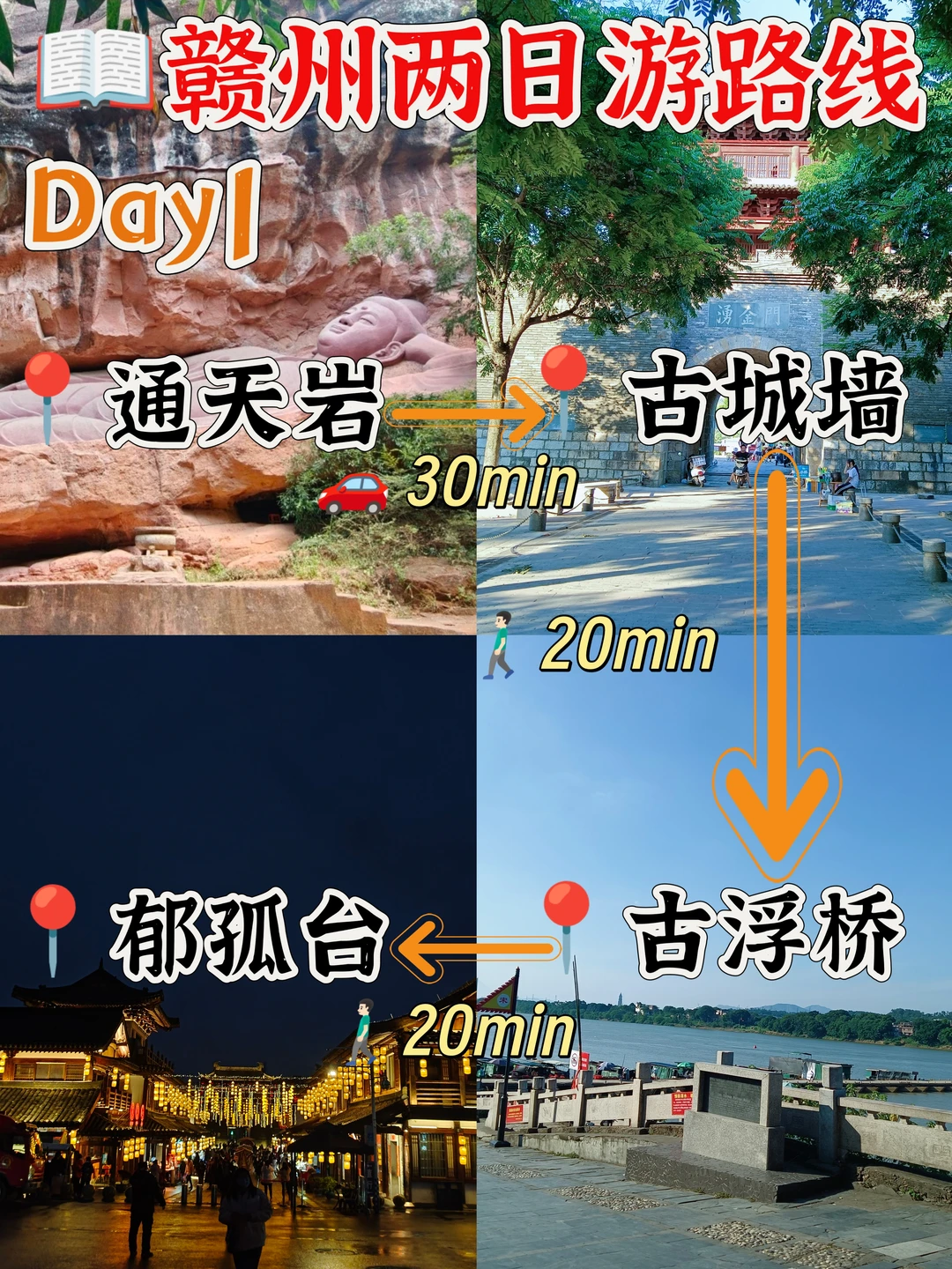 通天岩—古城墙—古浮桥—郁孤台
