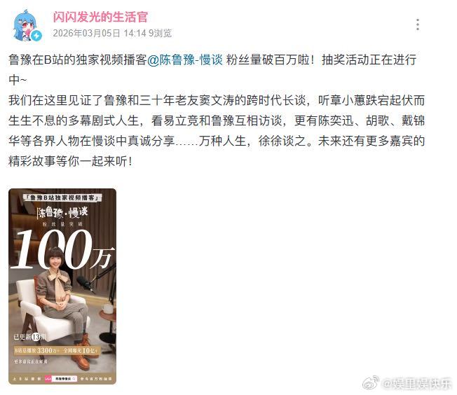 鲁豫吃了多少盐才能讲出这些话 鲁豫B站播客破百万啦!半年13期,期期精品,好内容总能打动人心,值得反复回味💫