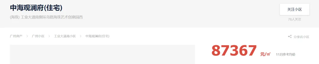 项目旁的中海观澜府,目前在二手市场挂牌均价约8.7万/㎡。