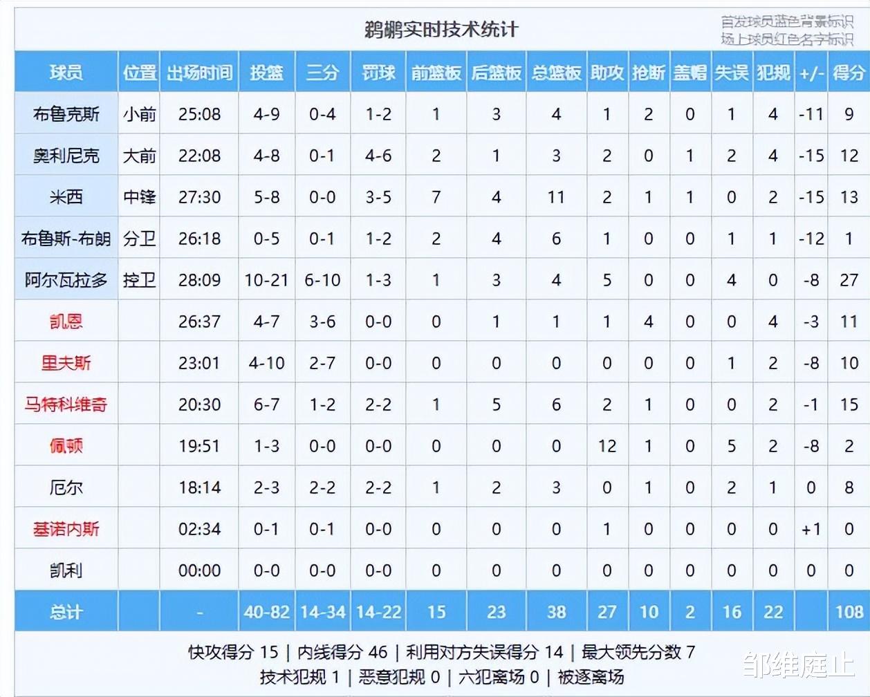 数据:东契奇35分6板6助、里夫斯30分3板7助、詹姆斯27分8助2断、克内克特12分、海斯6分12板2帽、文森特5分3板、芬尼-史密斯5分2板2助、古德温2分5板2助、范德比尔特2分3板;阿尔瓦拉多27分4板5助、马特科维奇15分6板2助、米西13分11板2助、奥利尼克12分3板2助、凯恩11分4断、里夫斯10分、布鲁克斯9分4板2断、厄尔8分3板、佩顿2分12助、布鲁斯-布朗1分6板
