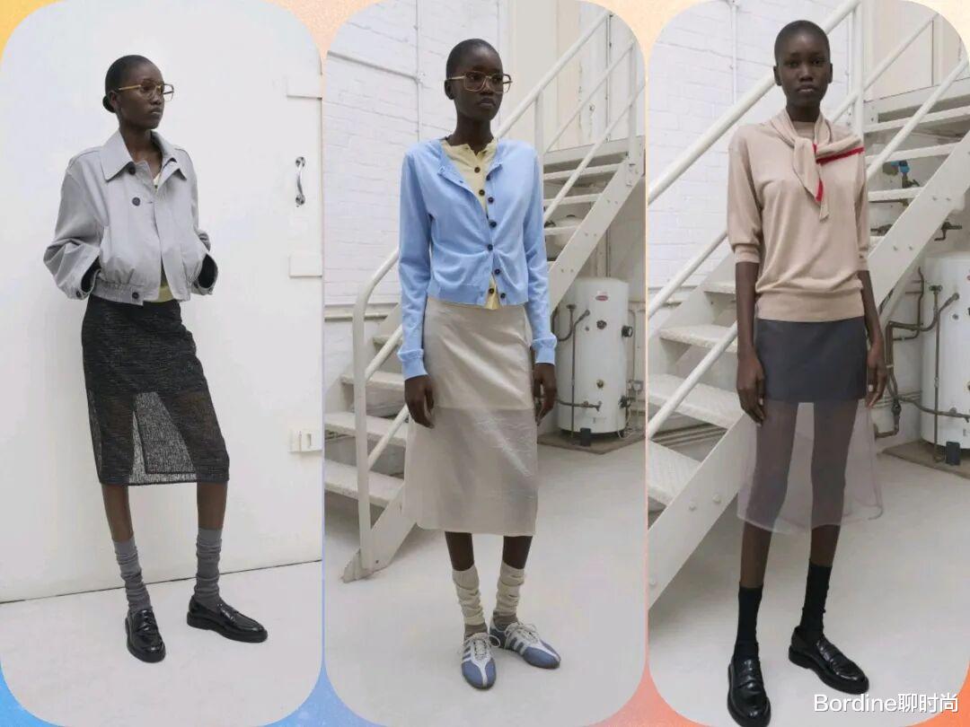 灰色等颜色在低调的简约中,面料增加了材质的纹理质感,还有轻薄的薄纱材质也带着几分轻盈薄透的飘逸感,而在和针织、夹克等款式上衣的搭配,也在质感的对比中增加了更多休闲的时尚。