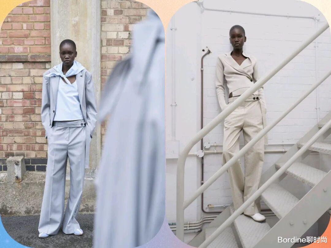 在浅色颜色为主的套装穿搭中,这些色彩多了一些低调的素雅气质,以纯色的简约结合了西服的干练强势,在领口的打结系带、不对称的缠绕等设计之上,为这些浅色套装的服装增加了更多的细节和时尚的设计感。