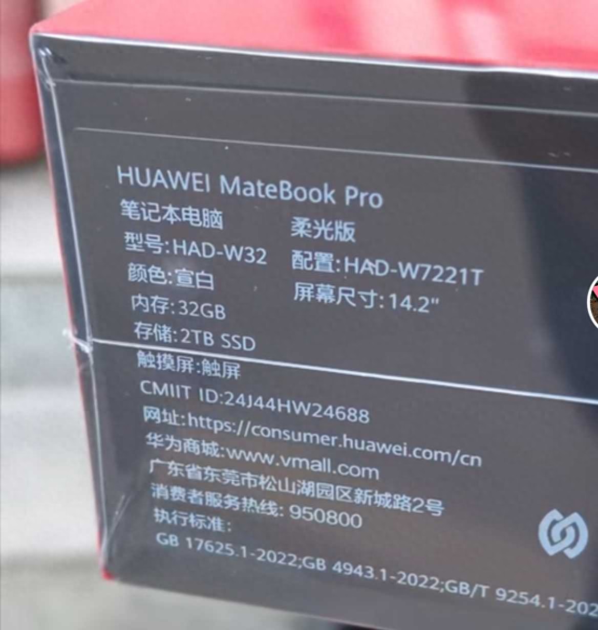 华为MateBook Pro的屏幕尺寸为14.2英寸,内存的32GB,存储为2TB的固态硬盘。