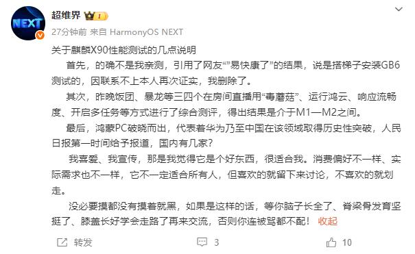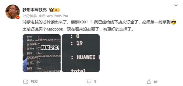 有博主通过第三方软件来对华为MateBook Pro进行测试,发现鸿蒙PC搭载的处理器是麒麟X90。