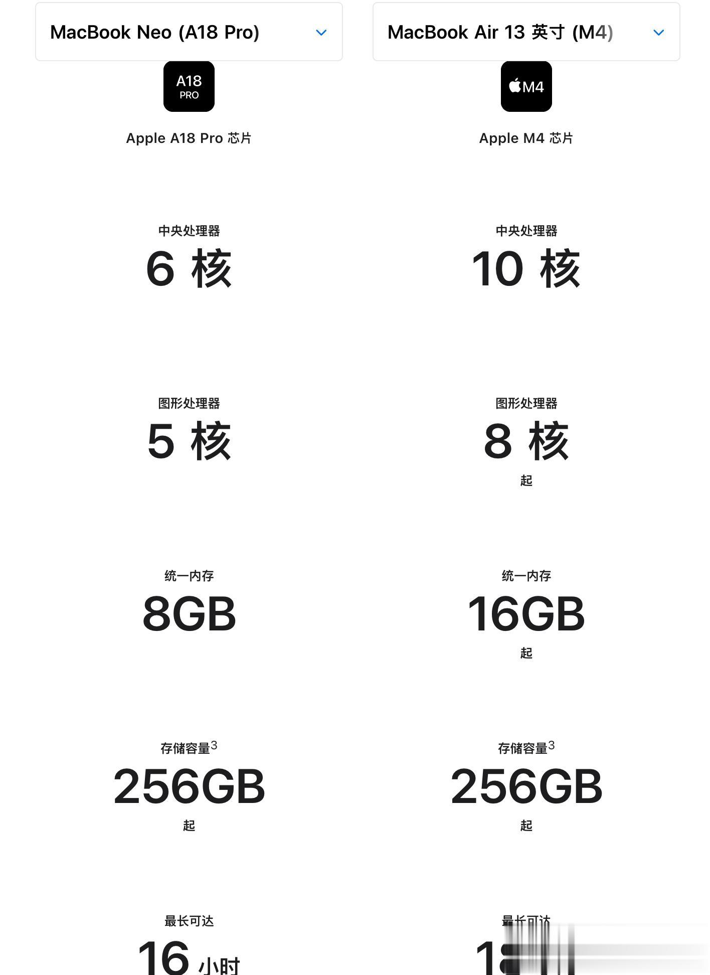 但是我仔细看了一下,MacBook Neo阉割的配置真不少: