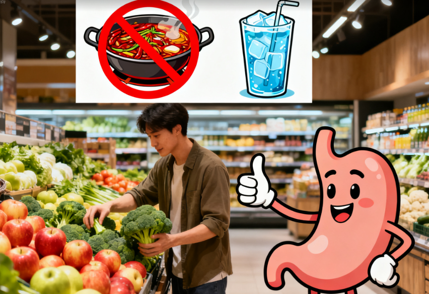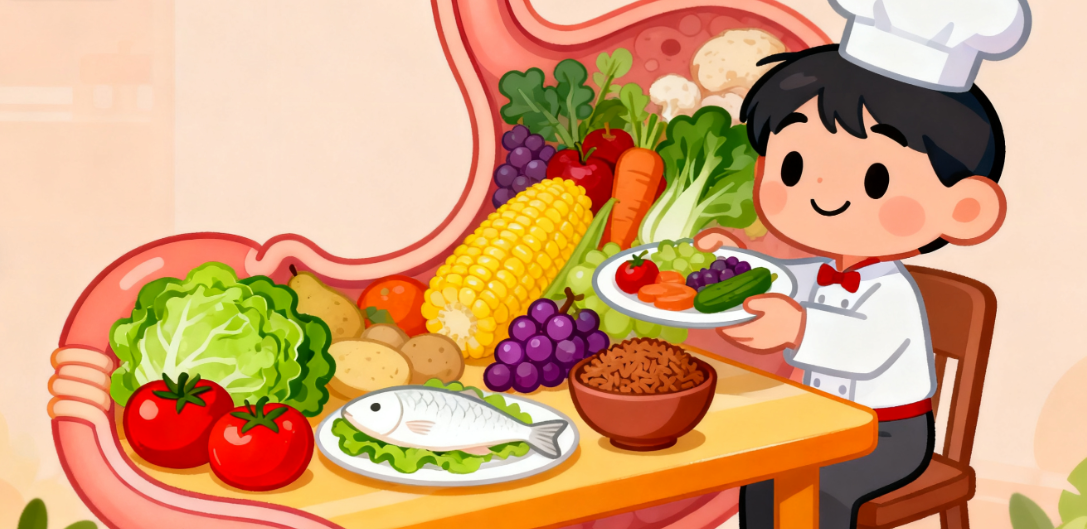 多吃“好消化”食物:选蒸煮(蒸蔬菜、煮面条、蒸鸡蛋),少吃油炸(炸鸡、烤串),减轻胃负担;