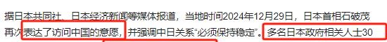 信息来源:北京日报客户端2025-01-01 石破茂拟暂缓访美,称“访华极重要”